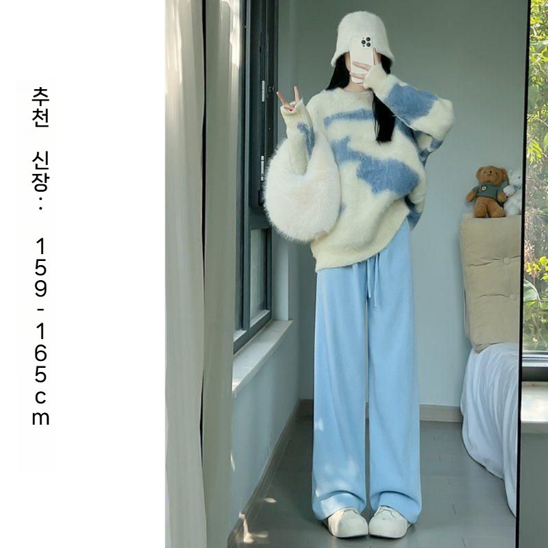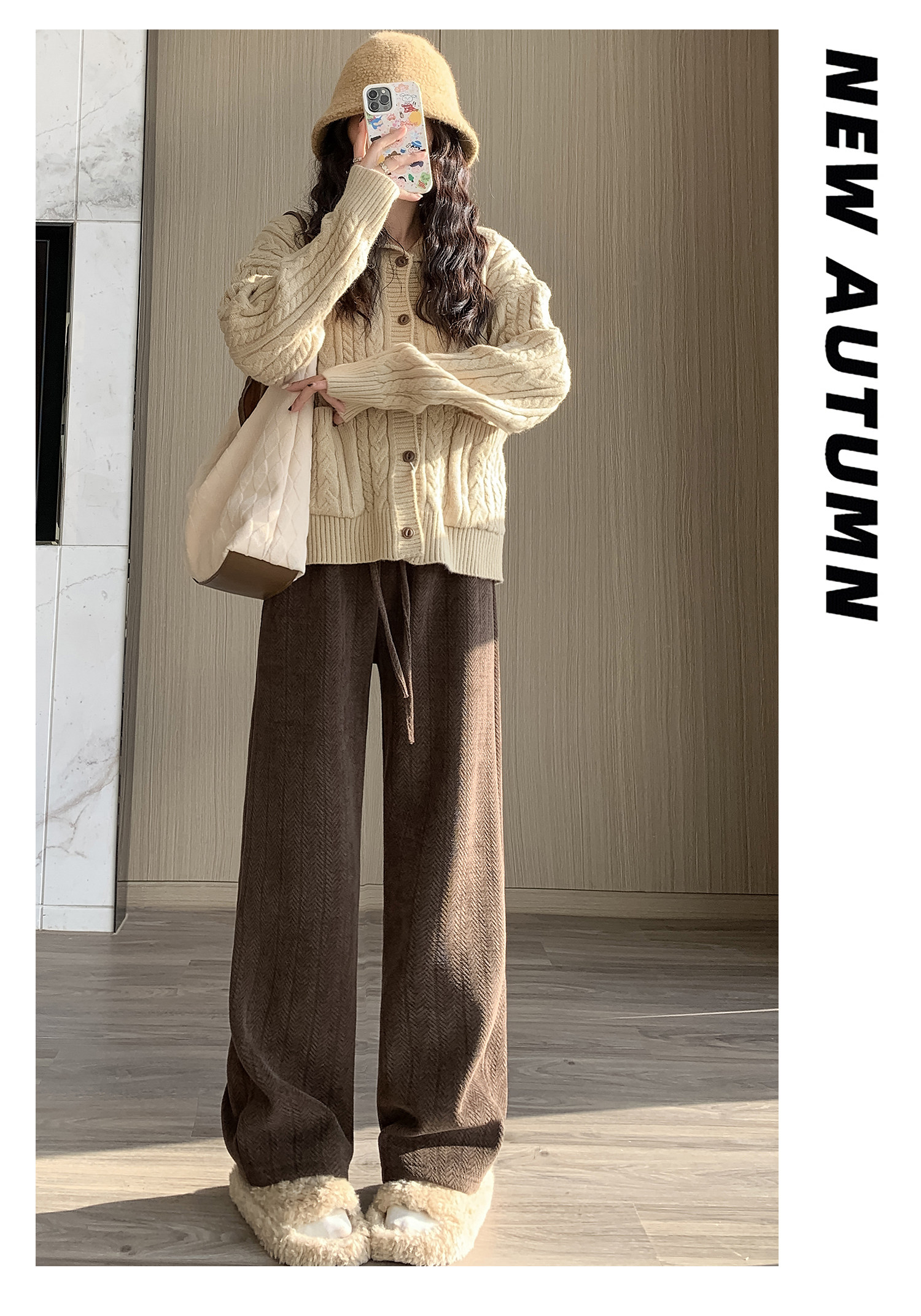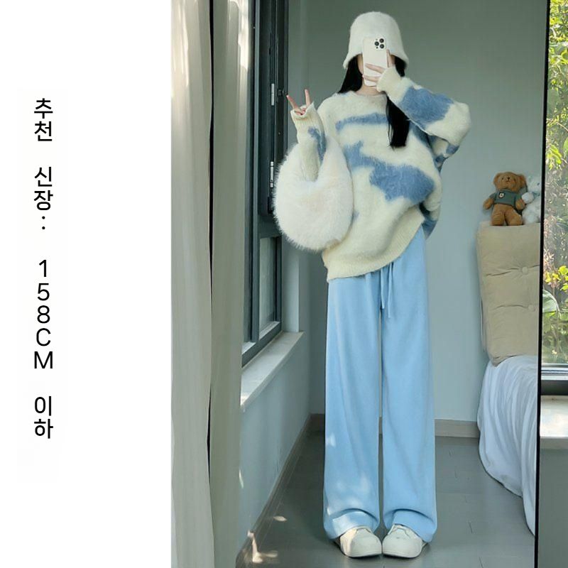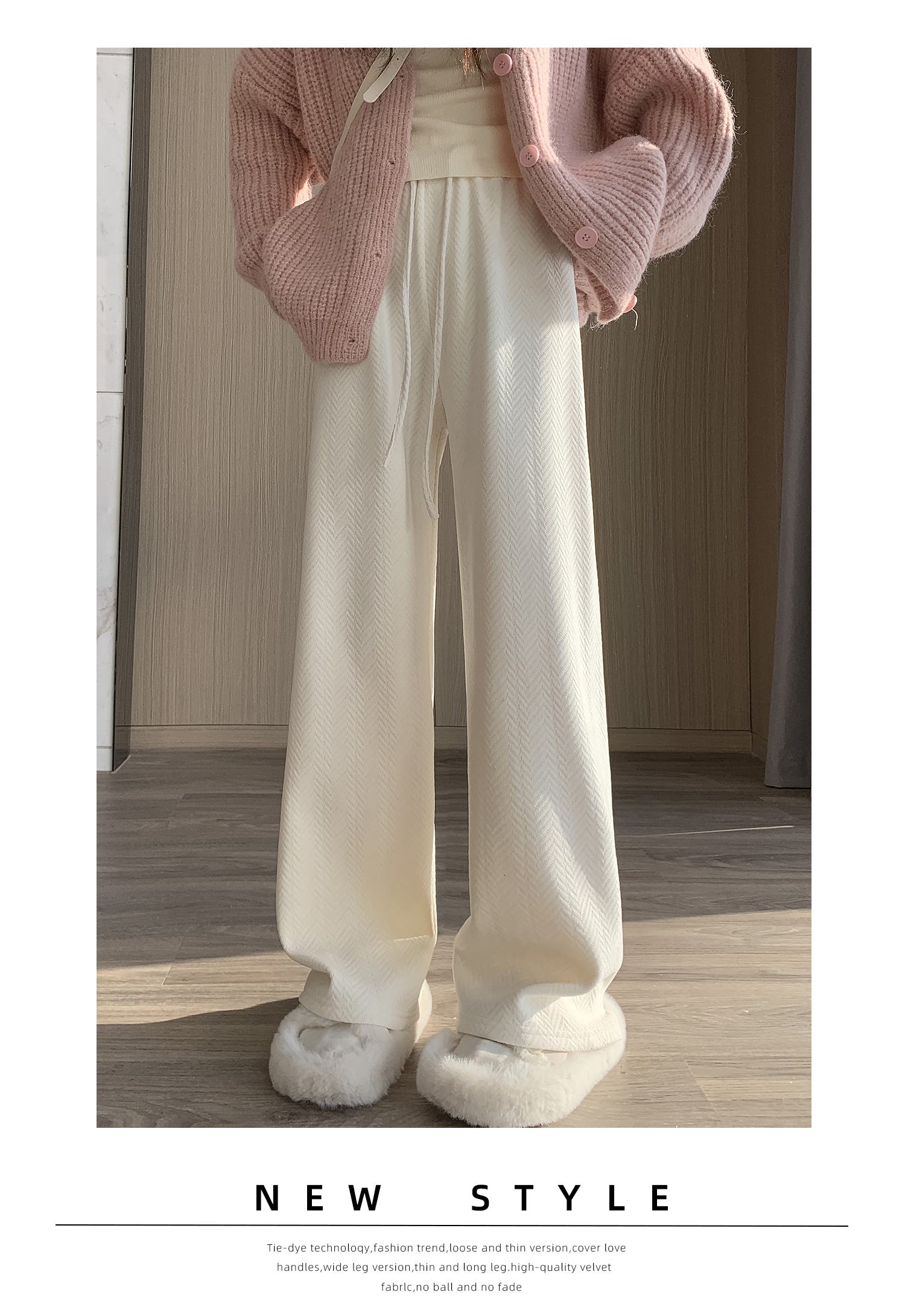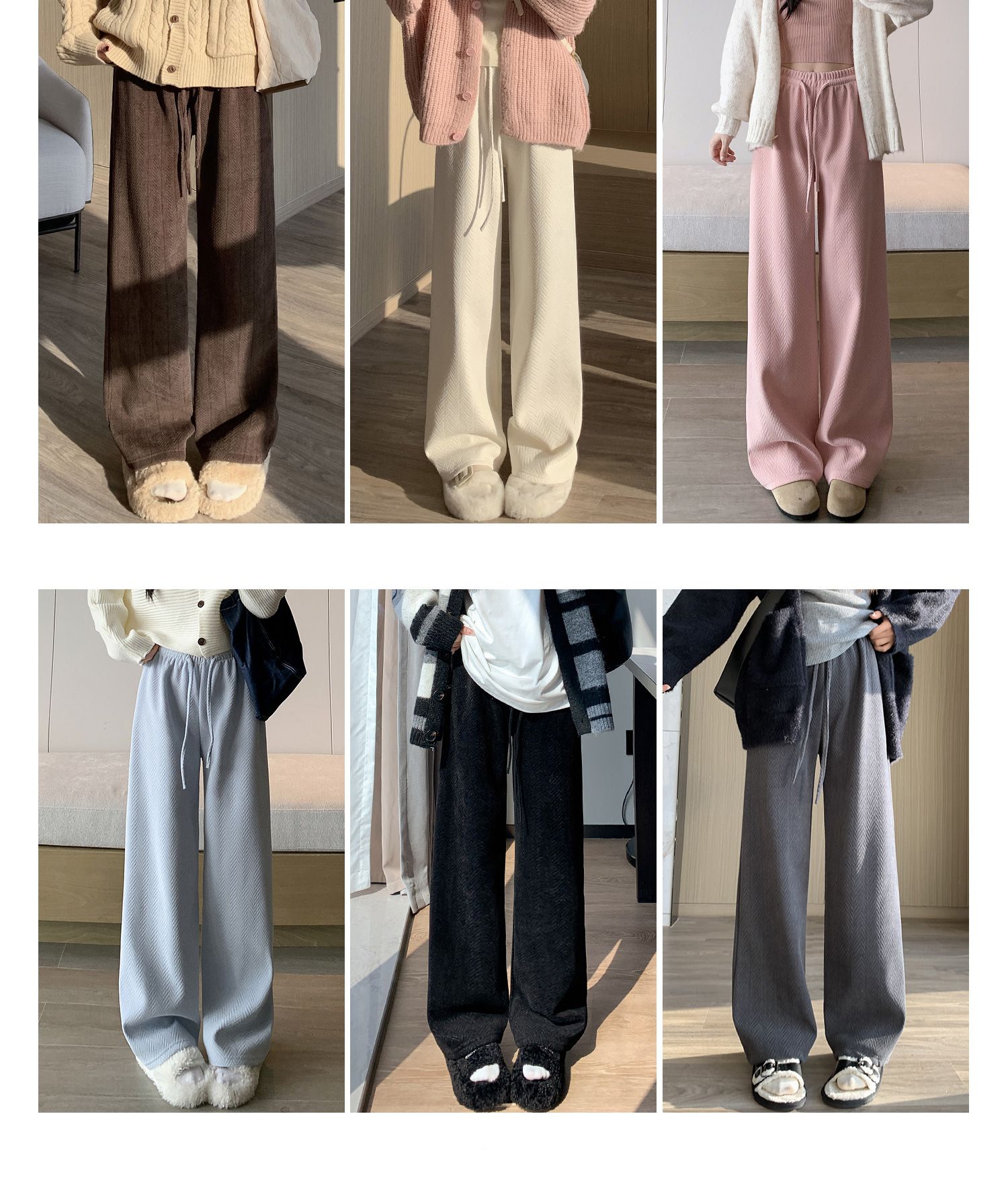 후끈 그레이 헤링본 셔닐 모직 와이드 양털 기모 팬츠 여성용 ss1236