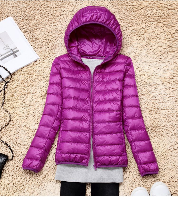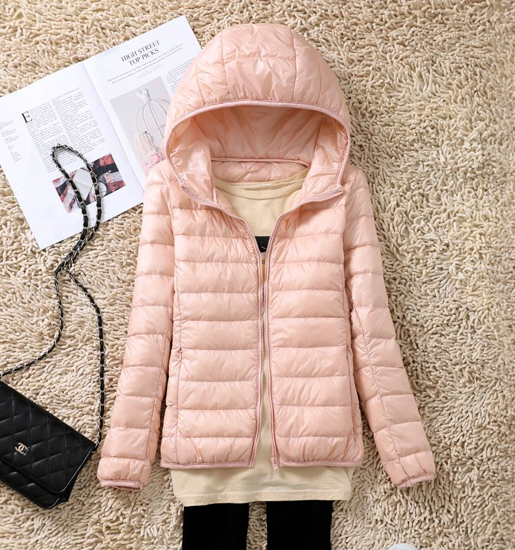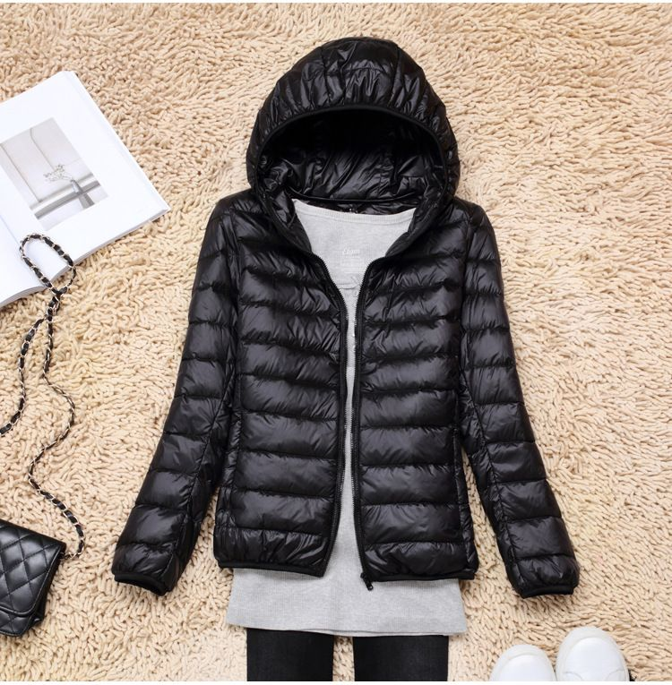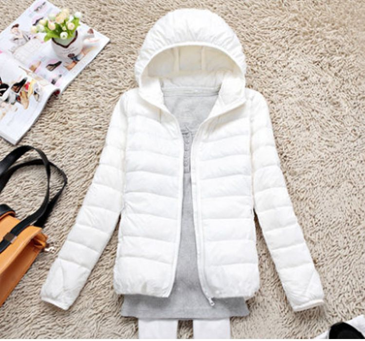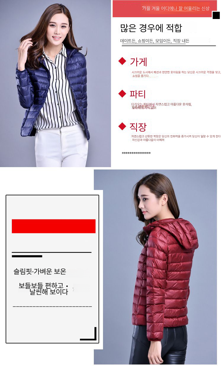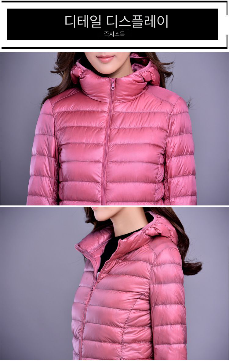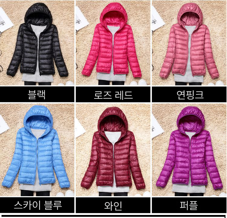 여자패딩 가벼운 후드 빅사이즈 오버핏 경량 화이트 오리털 보온 숏 기장 다운점퍼 아우터