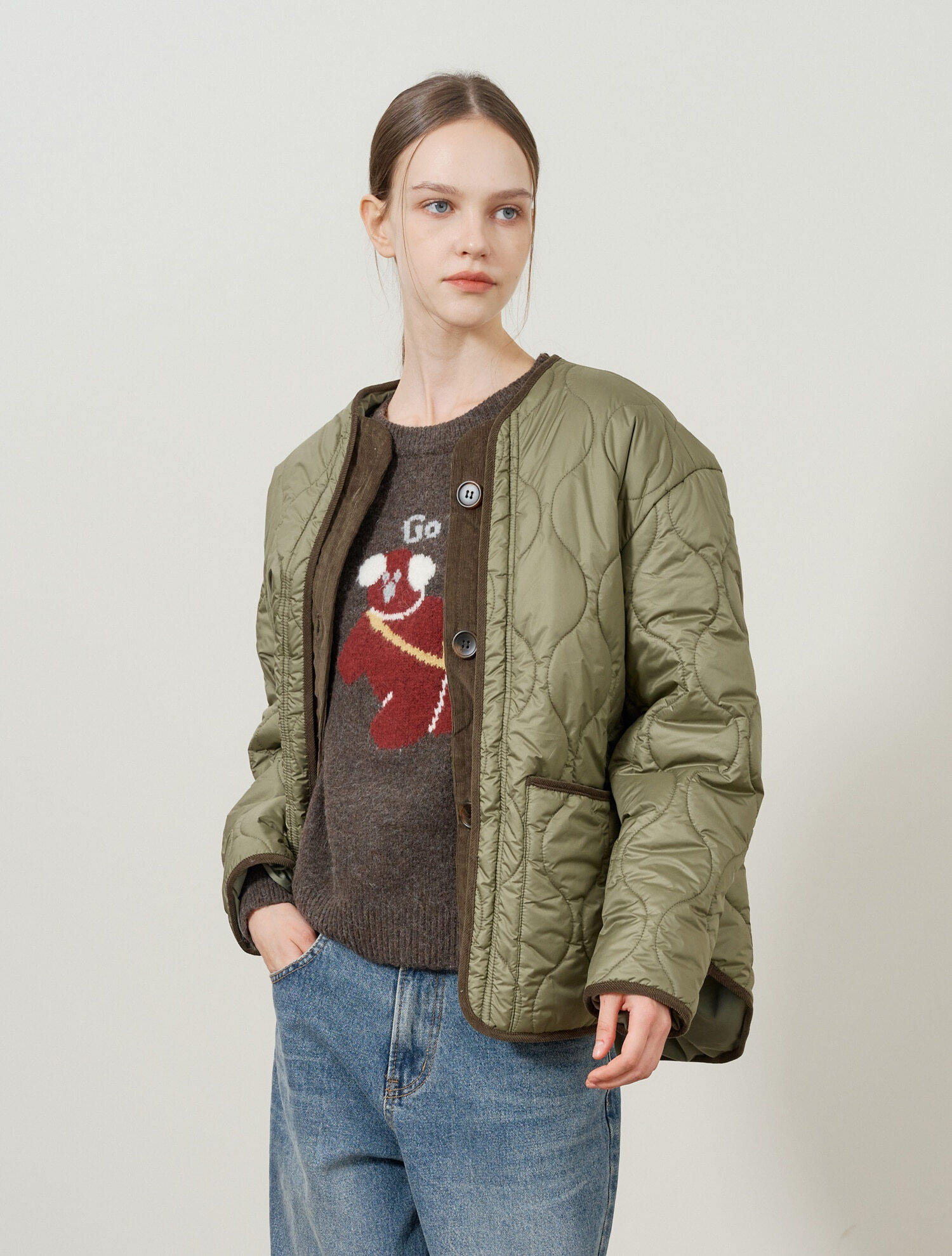 비엔엑스퀼팅 포켓 배색 패딩 점퍼 (BX4JP002L0)