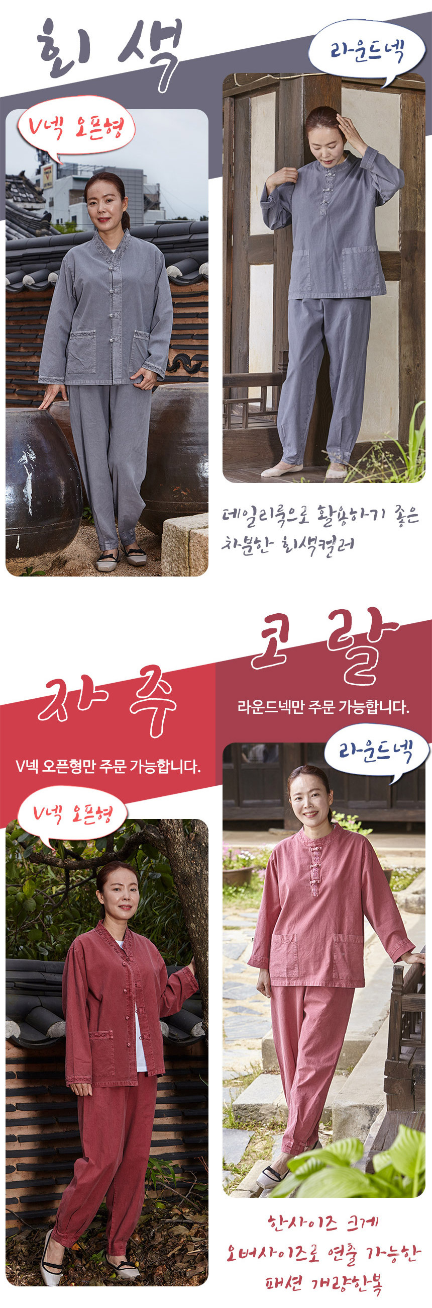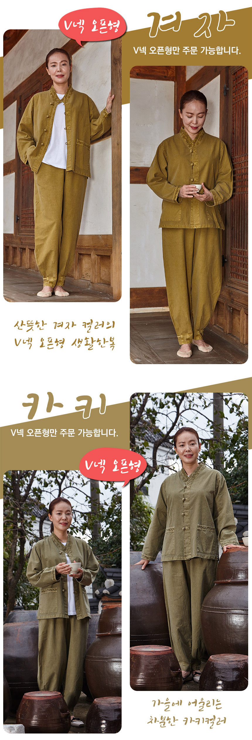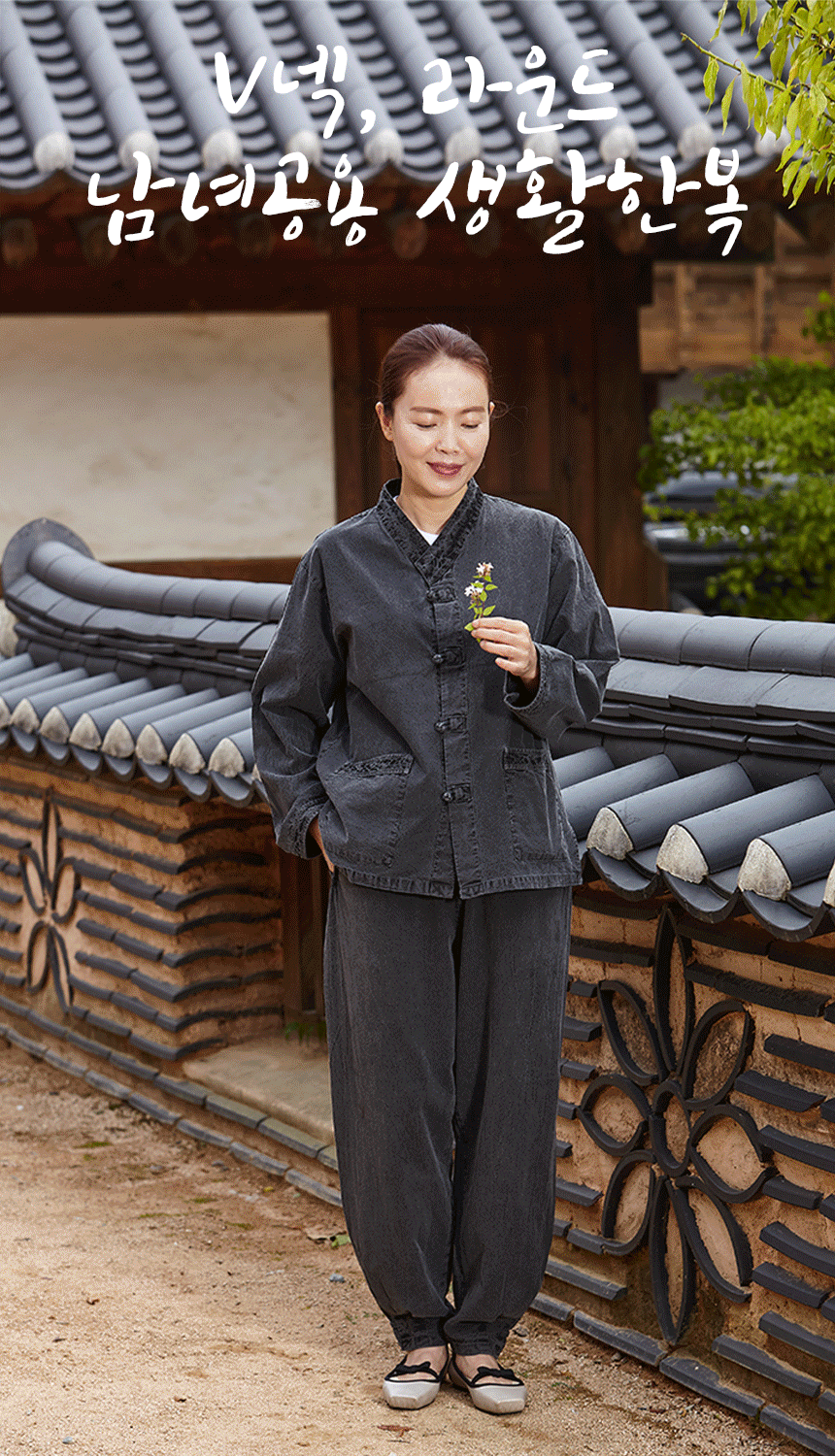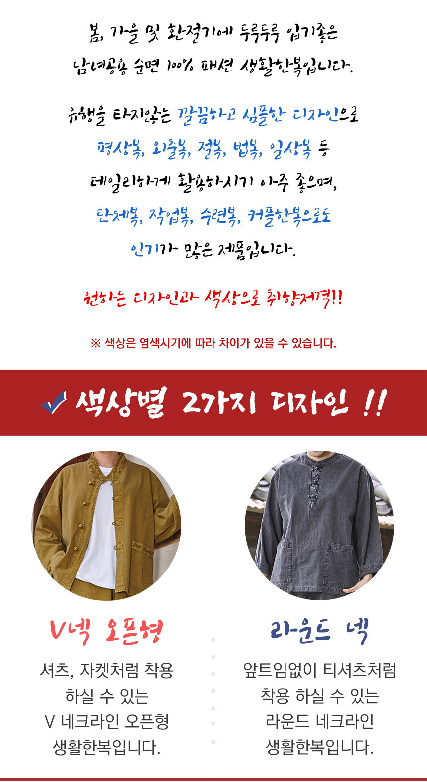 봄 남녀공용 V넥 라운드 긴팔 생활한복