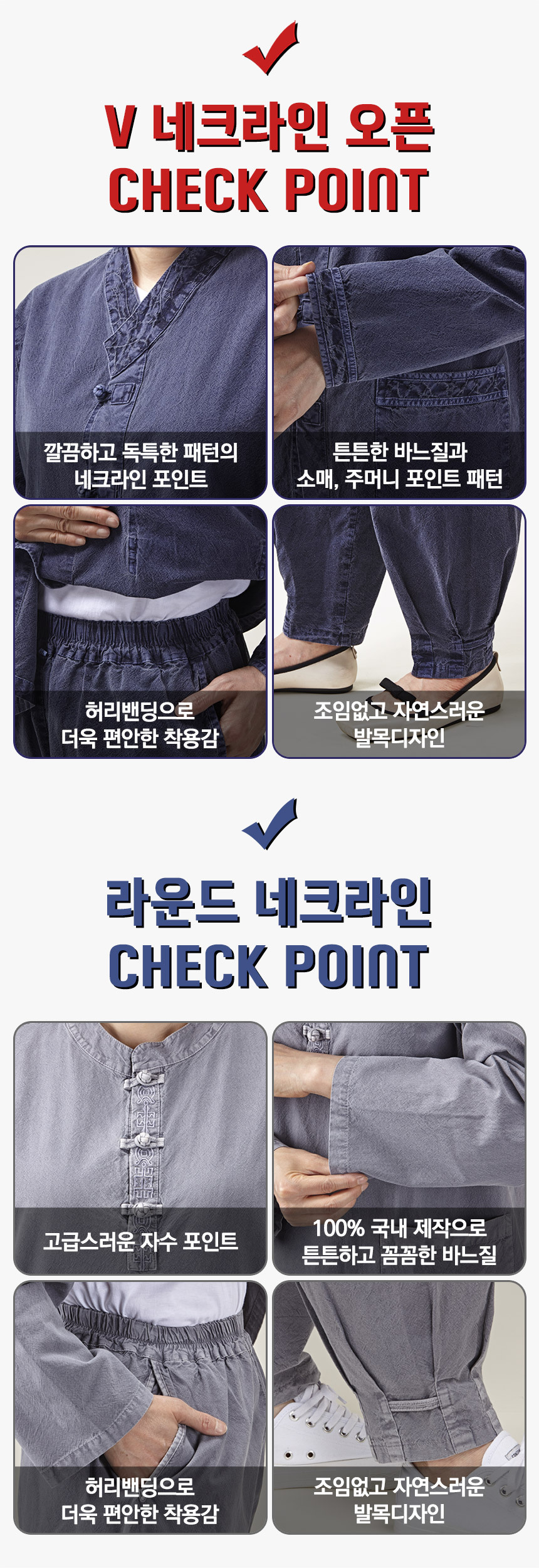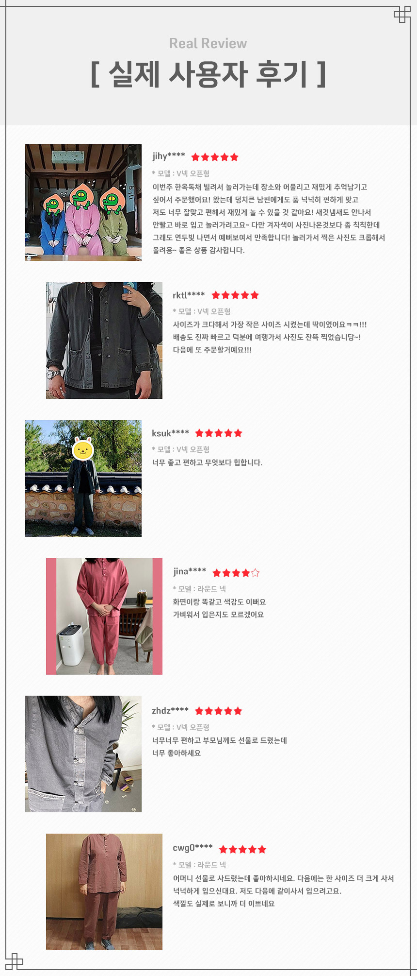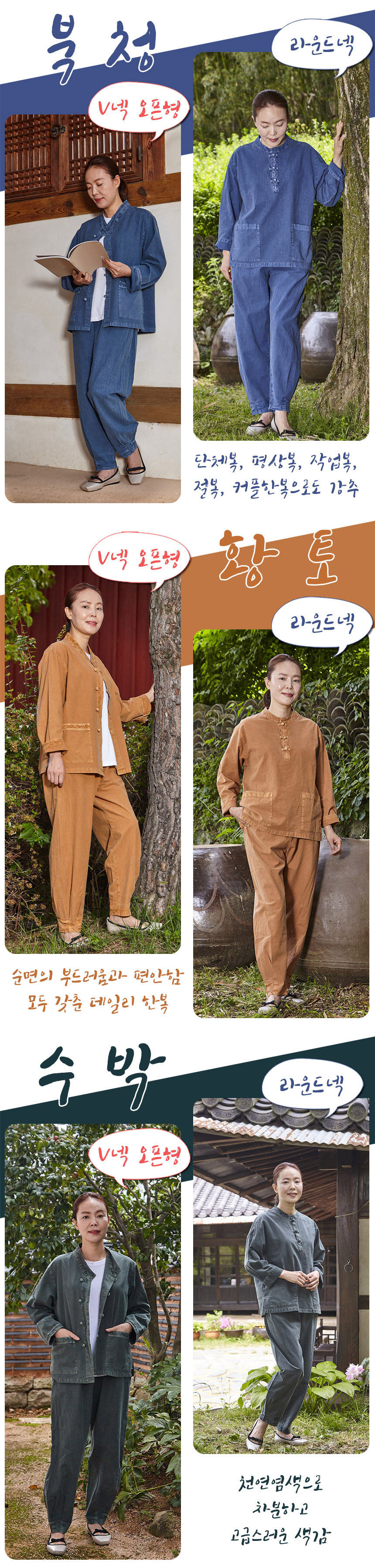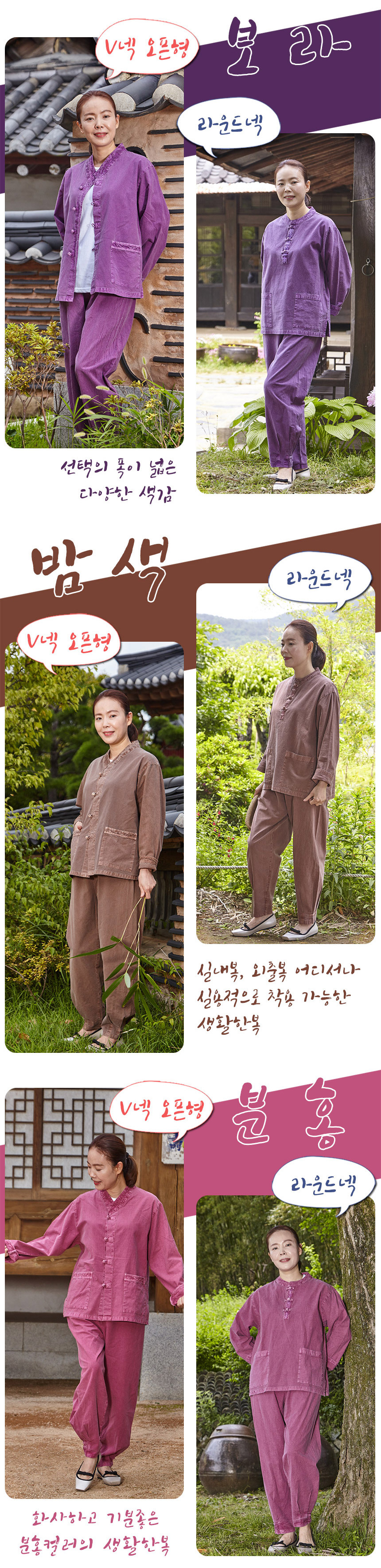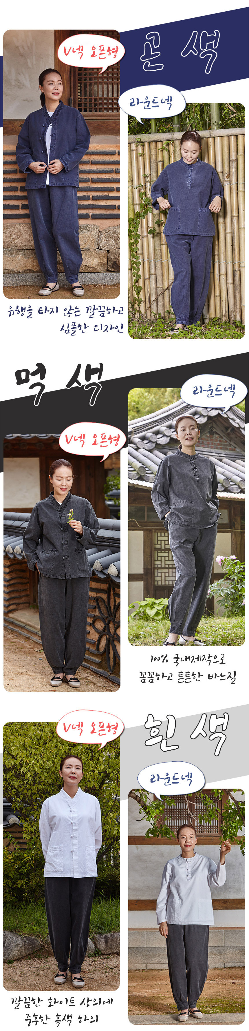 봄 남녀공용 V넥 라운드 긴팔 생활한복