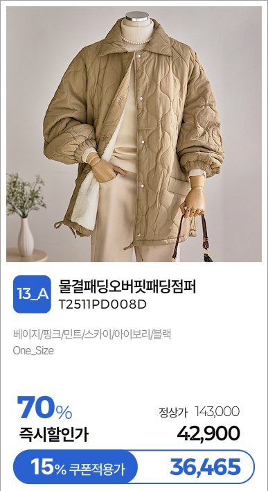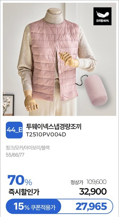 (패션픽)(15%+15%)모리스커밍홈외~ 겨울신상/베스트 경량 패딩/가디건/니트/자켓/원피스등
