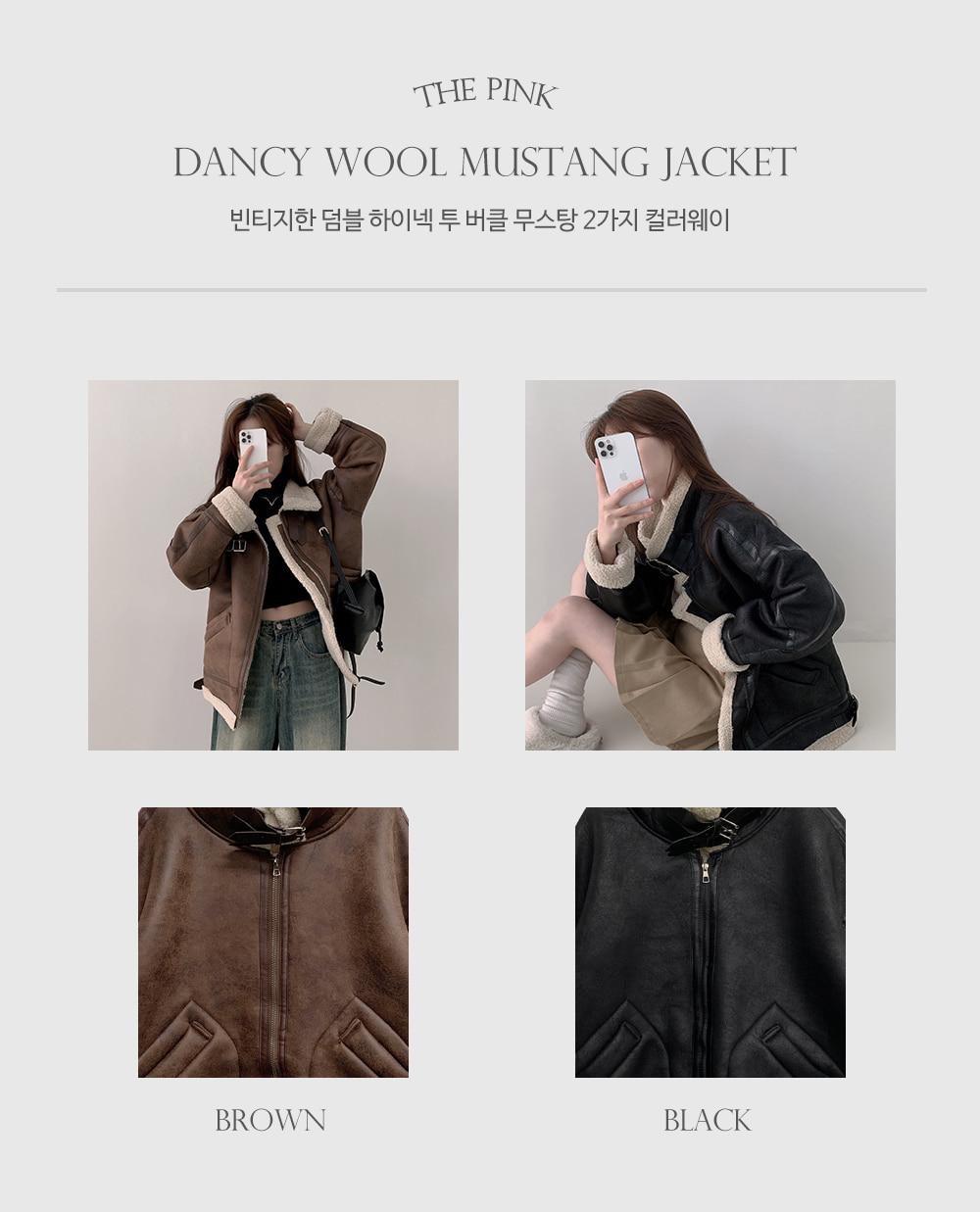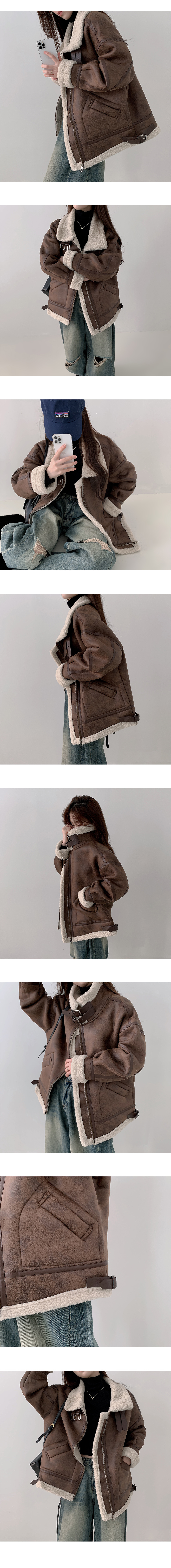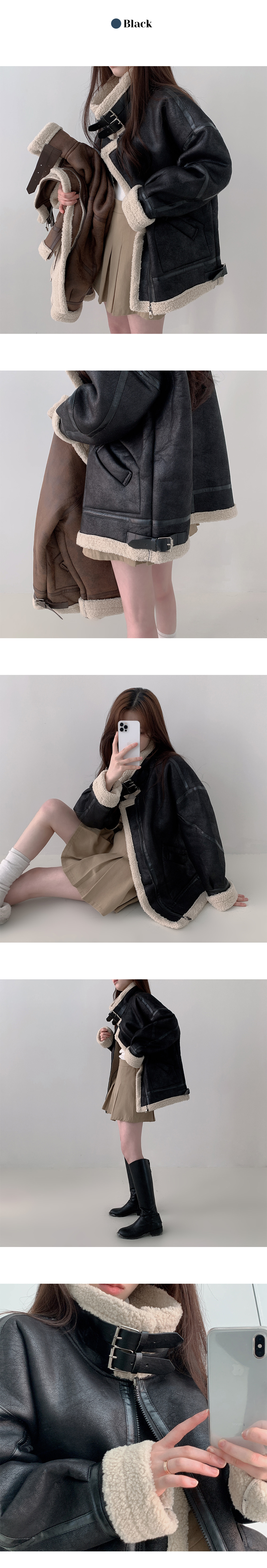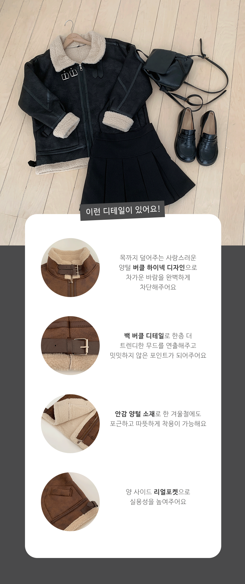댄시 오버핏 하이넥 버클 양털 무스탕 자켓