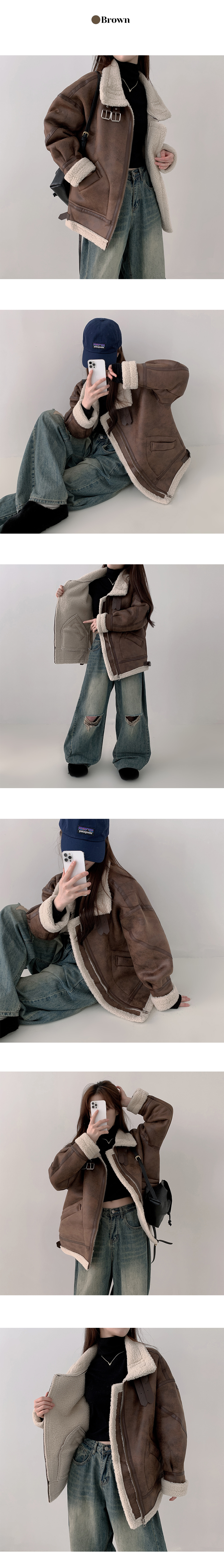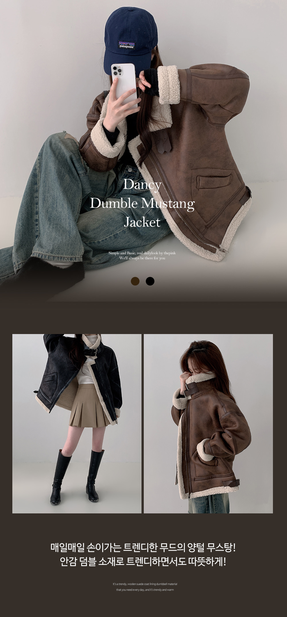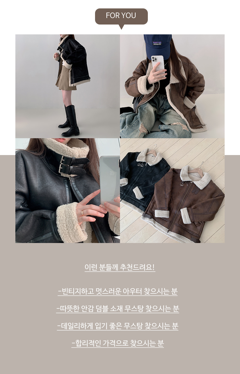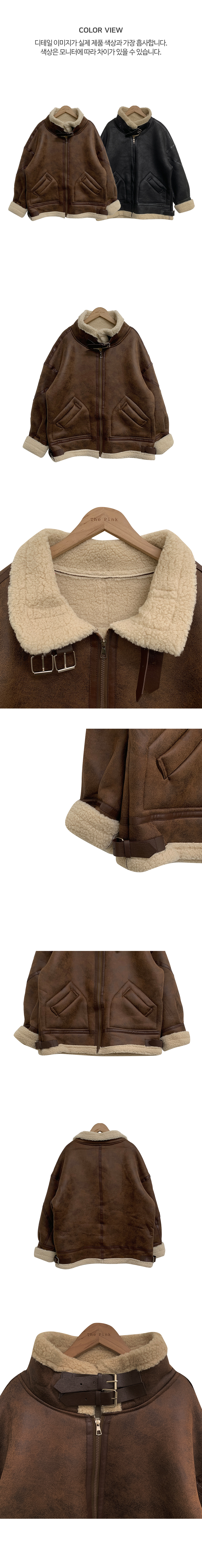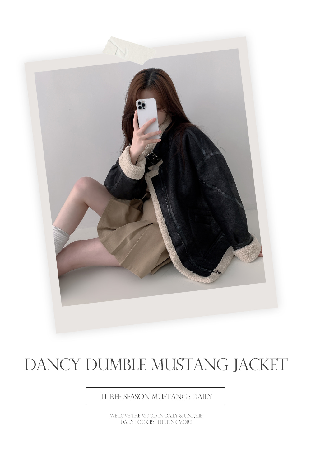 댄시 오버핏 하이넥 버클 양털 무스탕 자켓