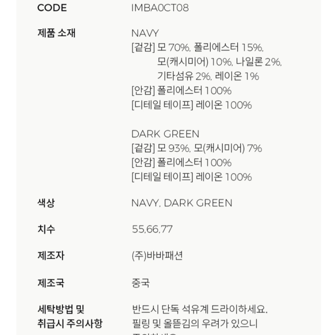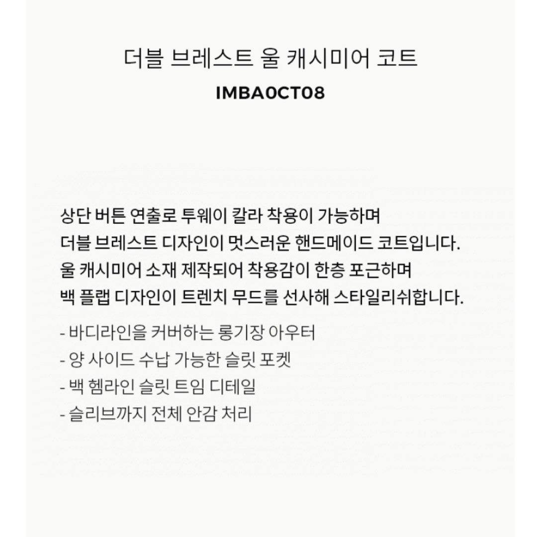 더아이잗모다아울렛더블 브레스트 울 캐시미어 코트 IMBA0CT08 DG