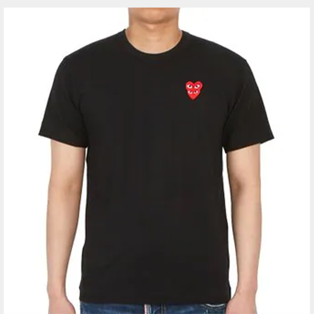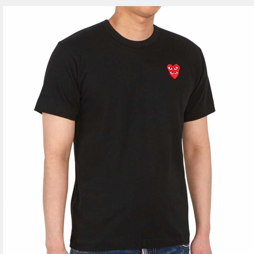 꼼데가르송 남성 플레이 더블 하트 크루넥 반팔 티셔츠 블랙 AX-T288-051-1