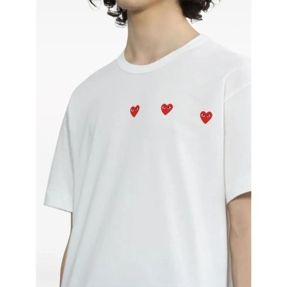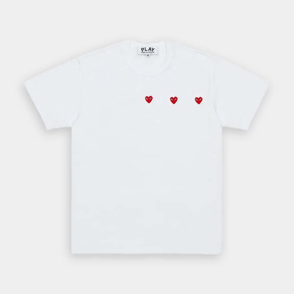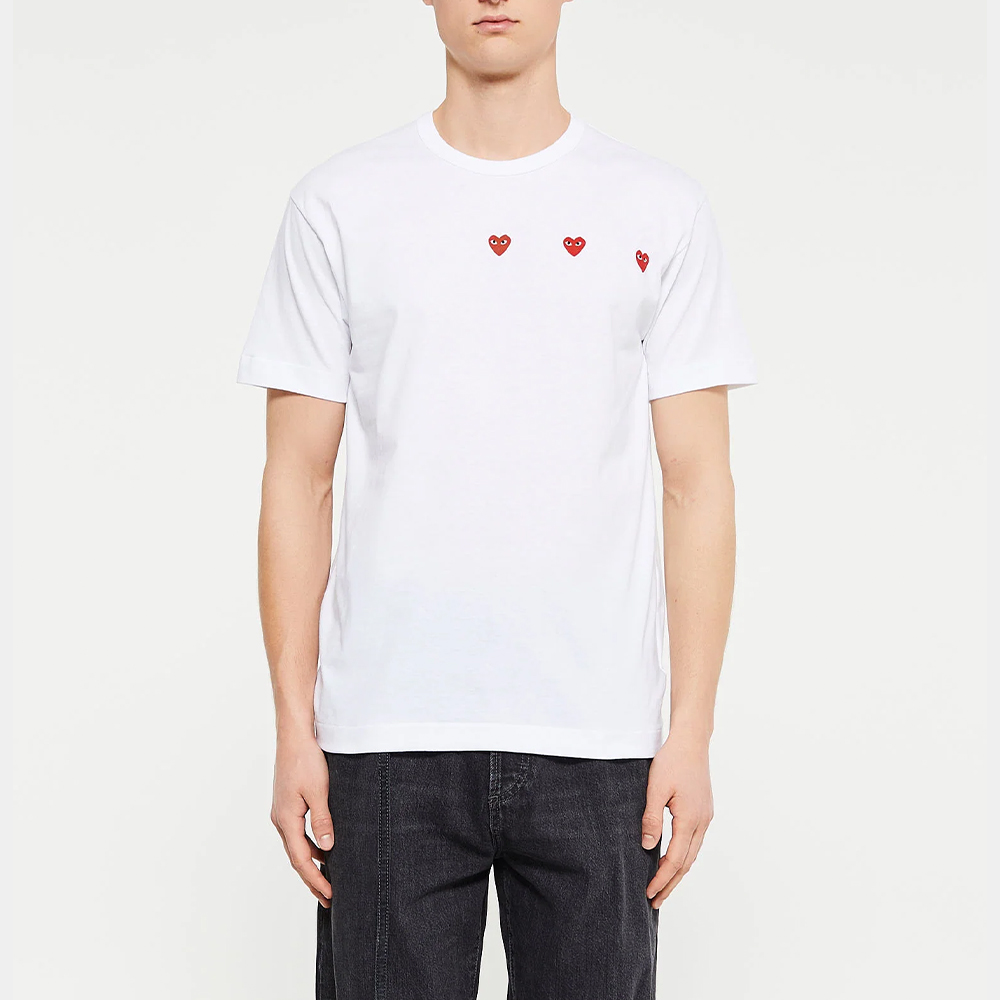 꼼데가르송 남성 트리플 로고 플레이 코튼 3미니하트 화이트 AX-T337-051-3
