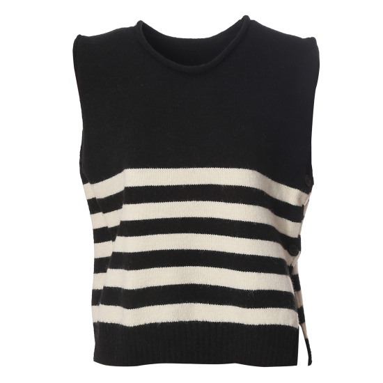 캐주얼한 무드의 단가라&무지 니트베스트