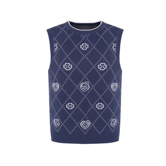 (롯데백화점)격자 패턴 라운드 니트 베스트 CLDWSW109