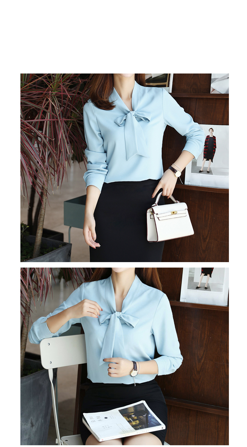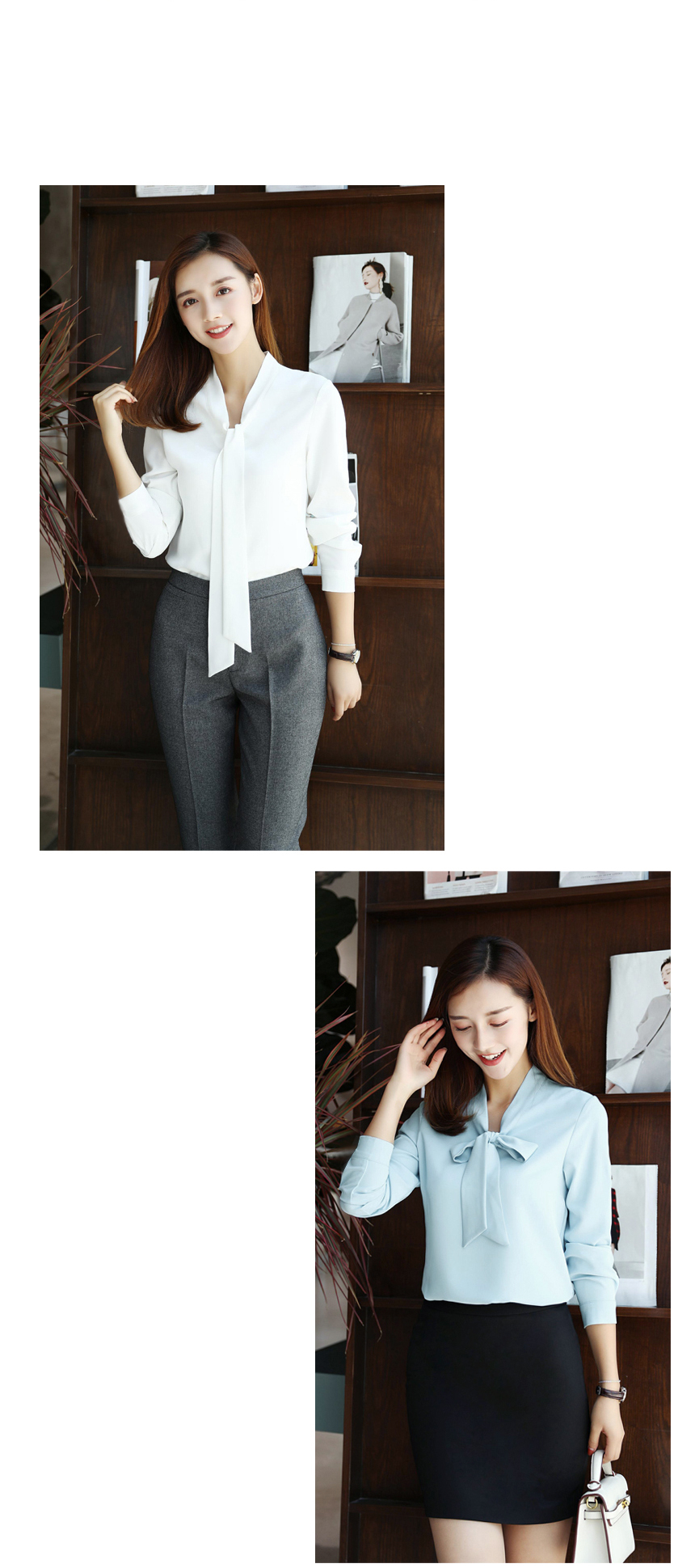 리본 타이 여성셔츠 정장블라우스 면접 유니폼 긴팔