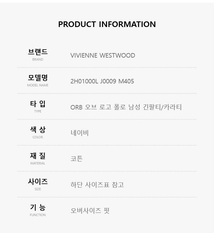비비안웨스트우드 남성 긴팔 폴로티 2H01000L J0009 M405