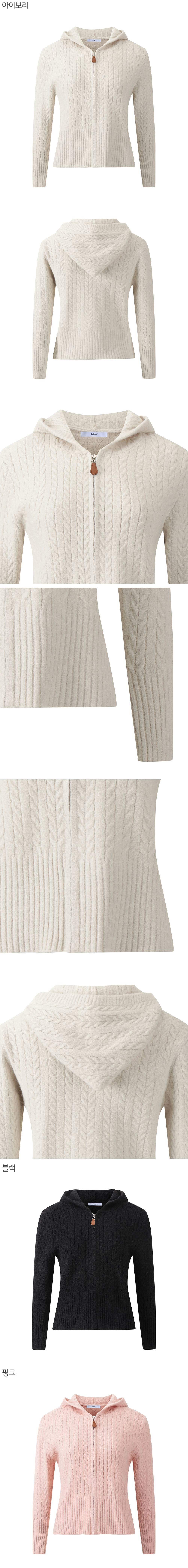 레더 집업 후드 케이블 니트 가디건 (BPAKC023A)