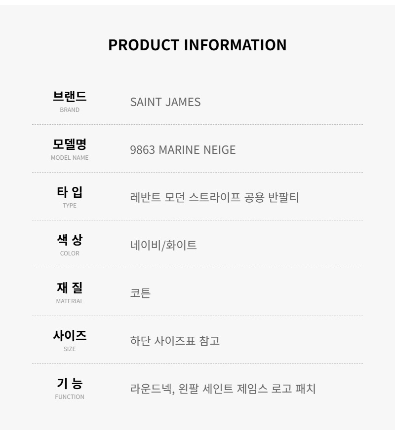 세인트제임스 SAINT JAMES 9863 MARINE NEIGE 공용 반팔티