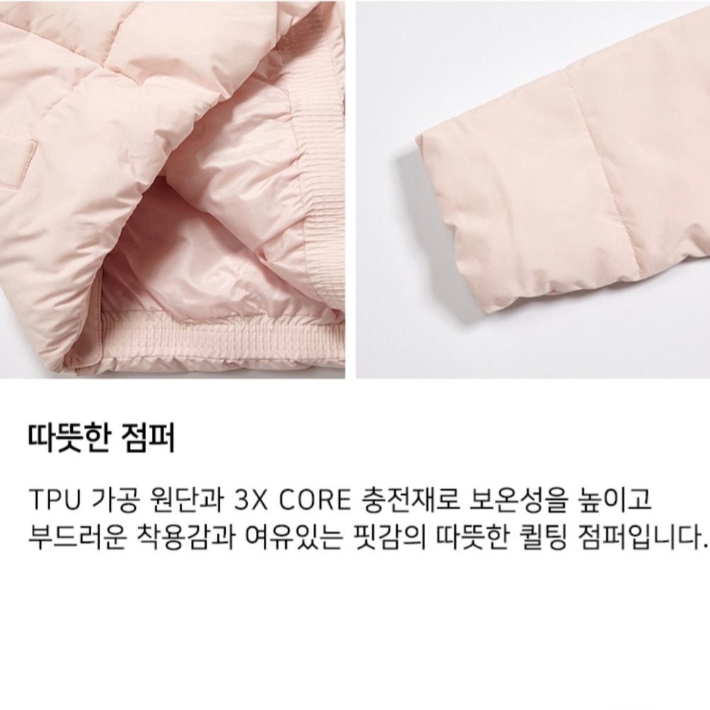 폴리 TPU가공 원단과 3X CORE충전재 보온성과 부드러운 착용감 라운드넥 퀼팅 자켓 디자인의 여유로운 핏으로 체형에 구애받지 않습니다.