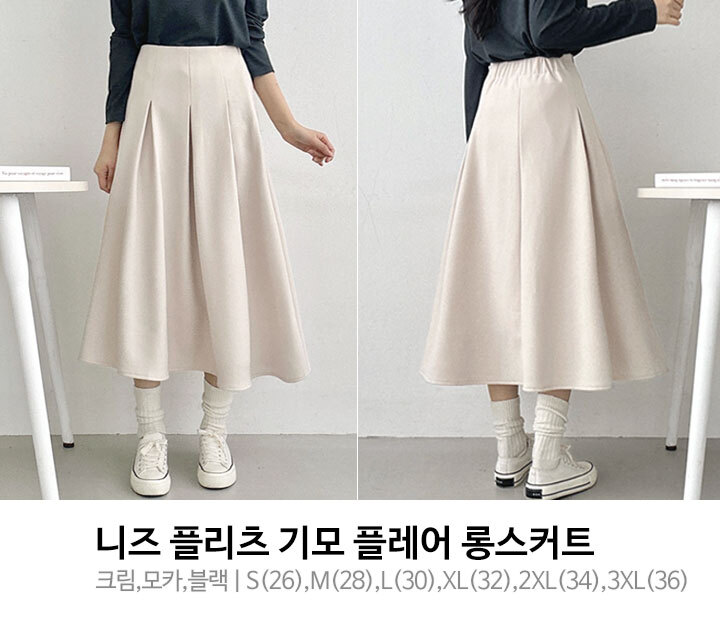 겨울 빅사이즈 롱 청 밴딩 플레어 미디 니트 랩 기모 H라인 골덴 머메이드 면 골덴 모직 벨벳 A라인 밍크