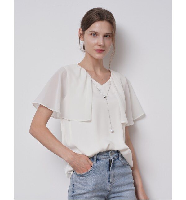 탱커스진주 목걸이 숄더 레이어드 소매 반팔 블라우스 (TX2BL055L0)