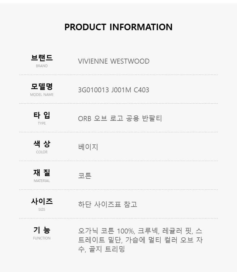 비비안웨스트우드 남녀공용 ORB 오브 Logo 로고 반팔 티셔츠(3G010013 J001M C403)