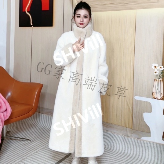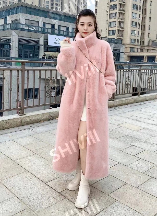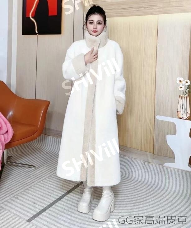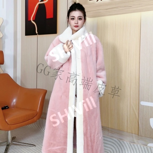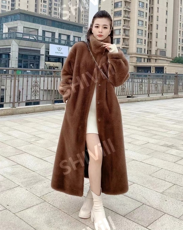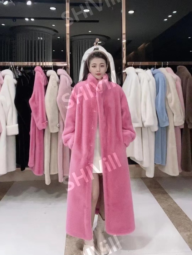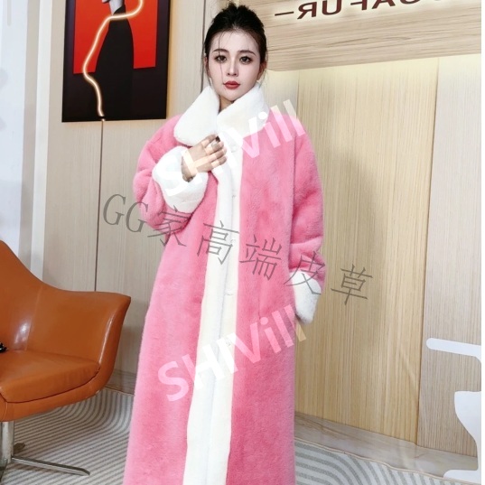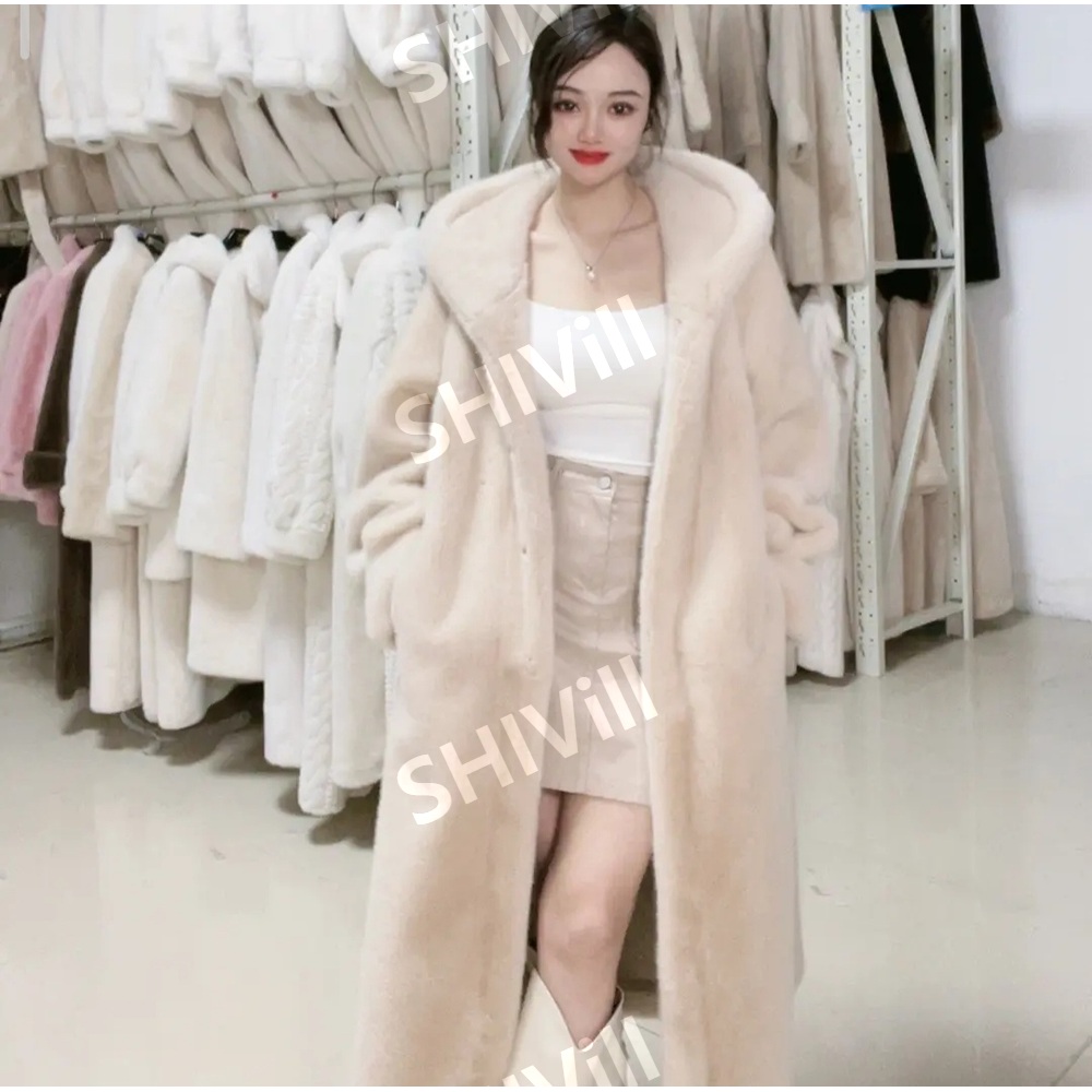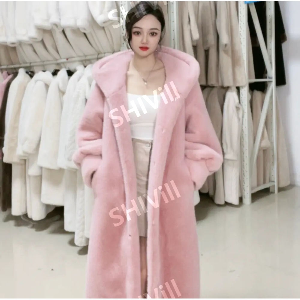 여성 겨울 롱코트 오버빗 인조 밍크 모피 코트 포근한 빅사이즈 우아한 루즈핏 정장 아우터