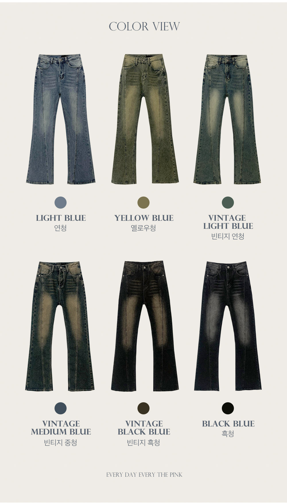 하이웨스트 부츠컷 절개라인 워싱 데님 팬츠 (6color)