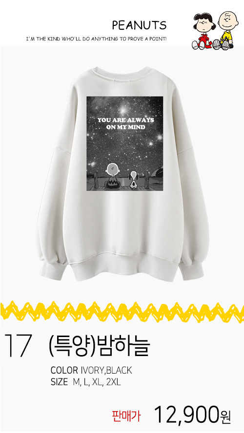 (15%쿠폰)FW신상 스누피정품 여성 오버핏 맨투맨 티셔츠 원피스 피너츠 여자 빅사이즈 박스티 커플티
