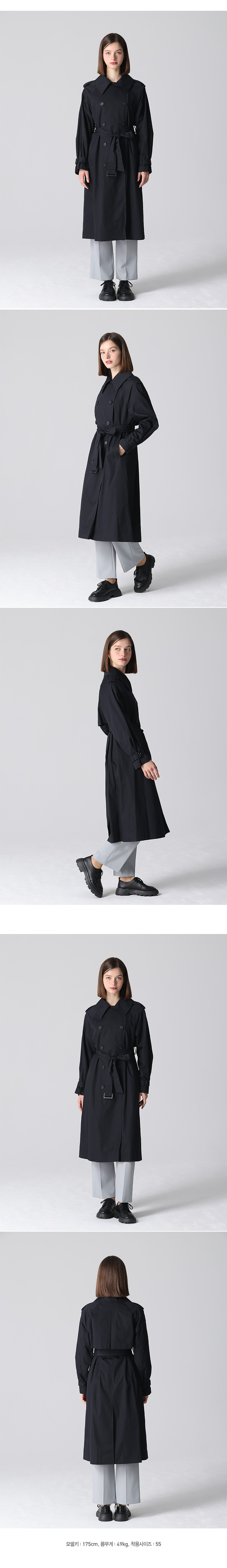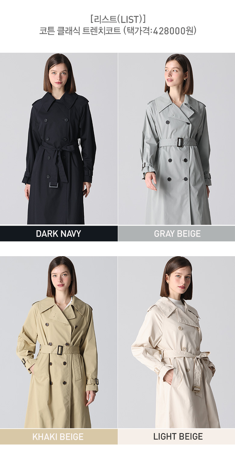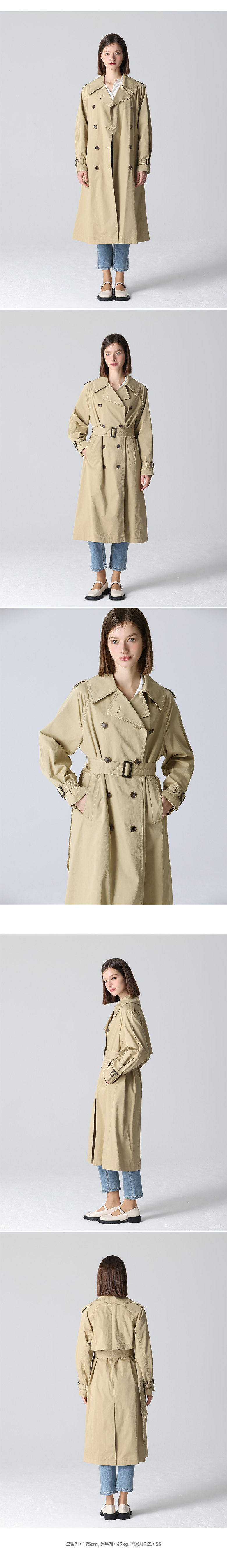 코튼 소재는 무겁지 않지만, 트렌치코트 특유의 디자인과 구조 덕분에 고급스러운 느낌을 자아냅니다.