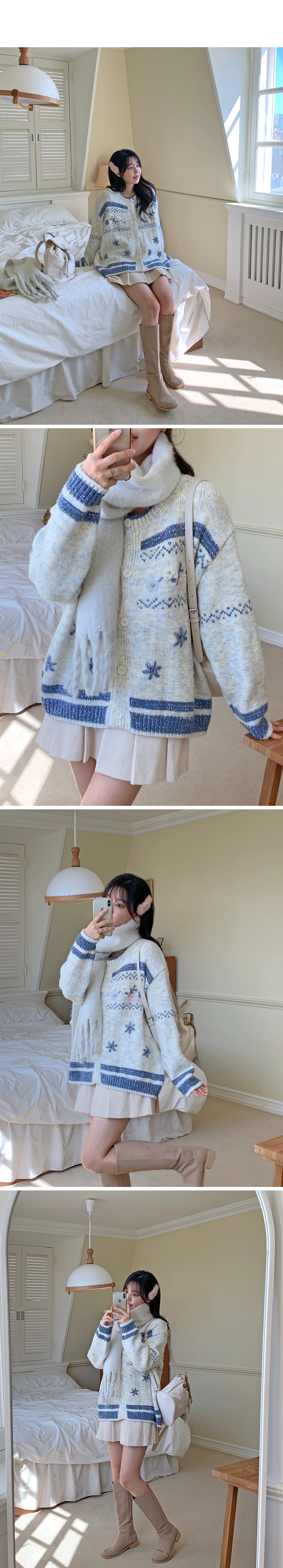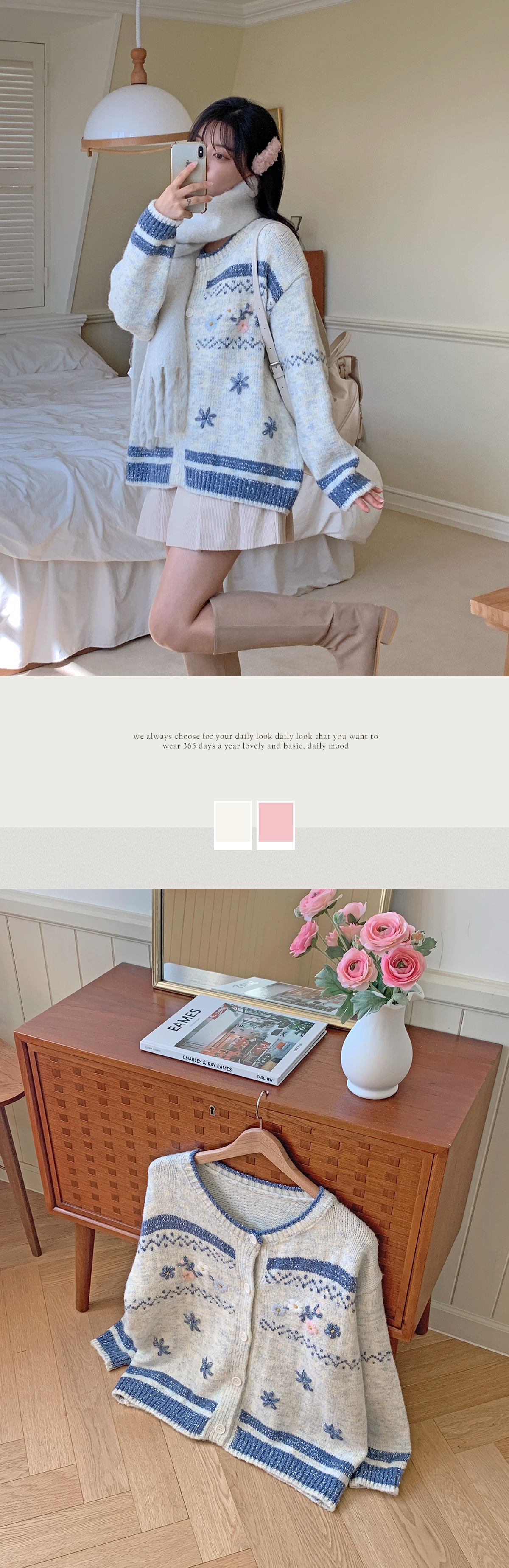 [ 자그사 꽃자수 노르딕 빈티지 배색 가디건 ]