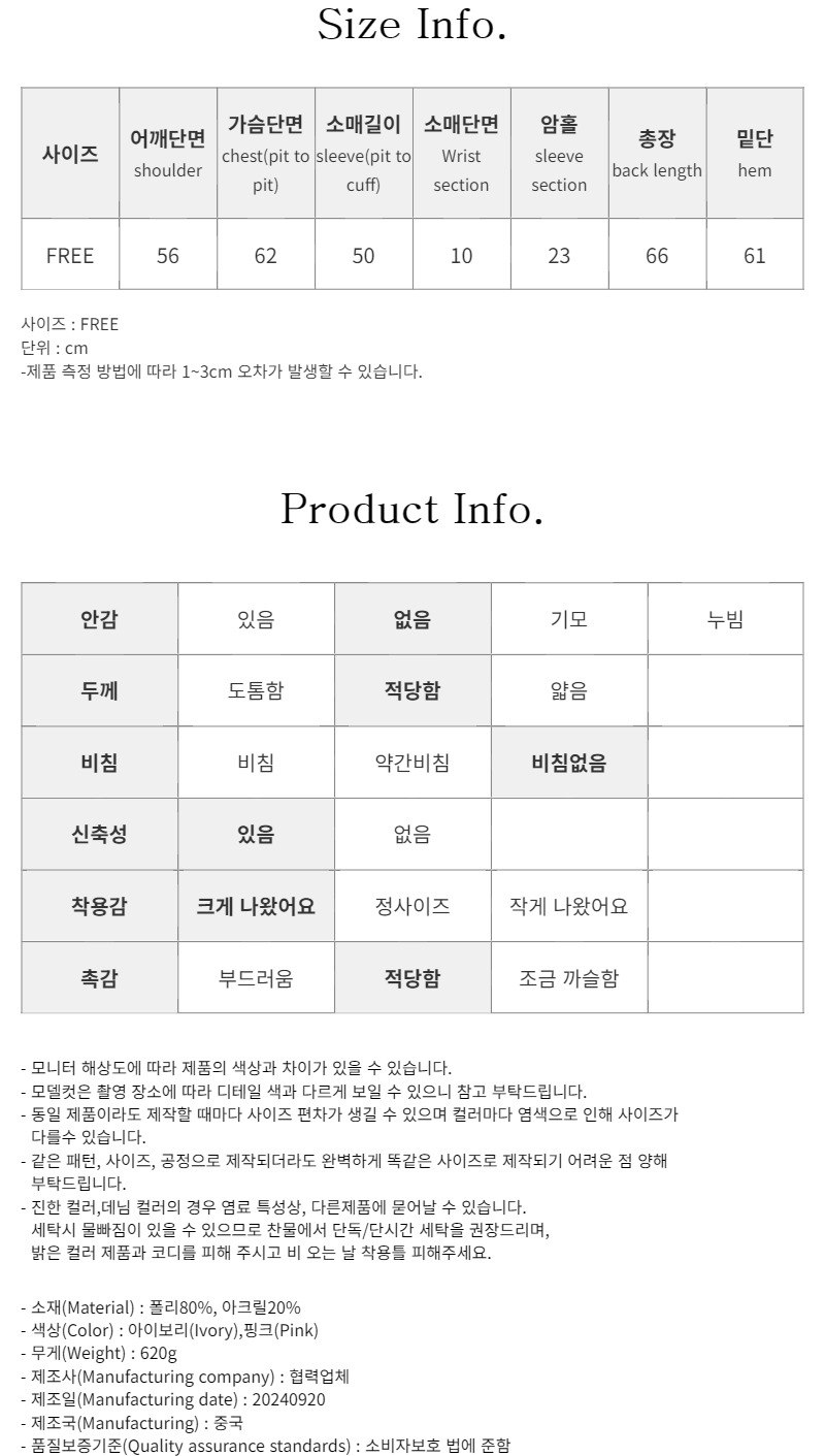 - COLOR(색상) : 아이보리(Ivory),핑크(Pink)