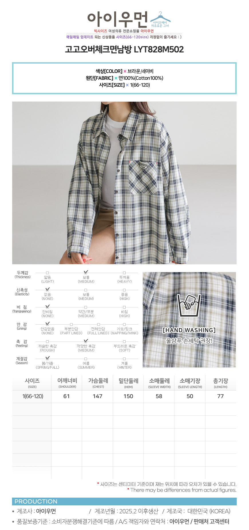 아이우먼 고고오버체크면남방 LYT828M502 빅사이즈