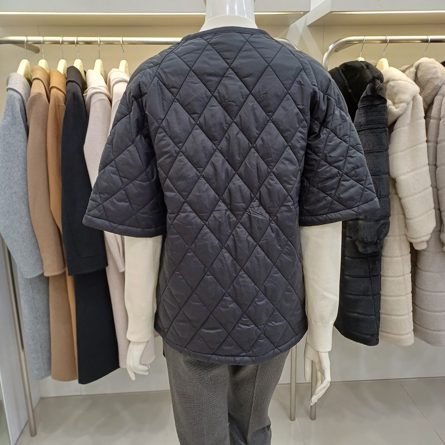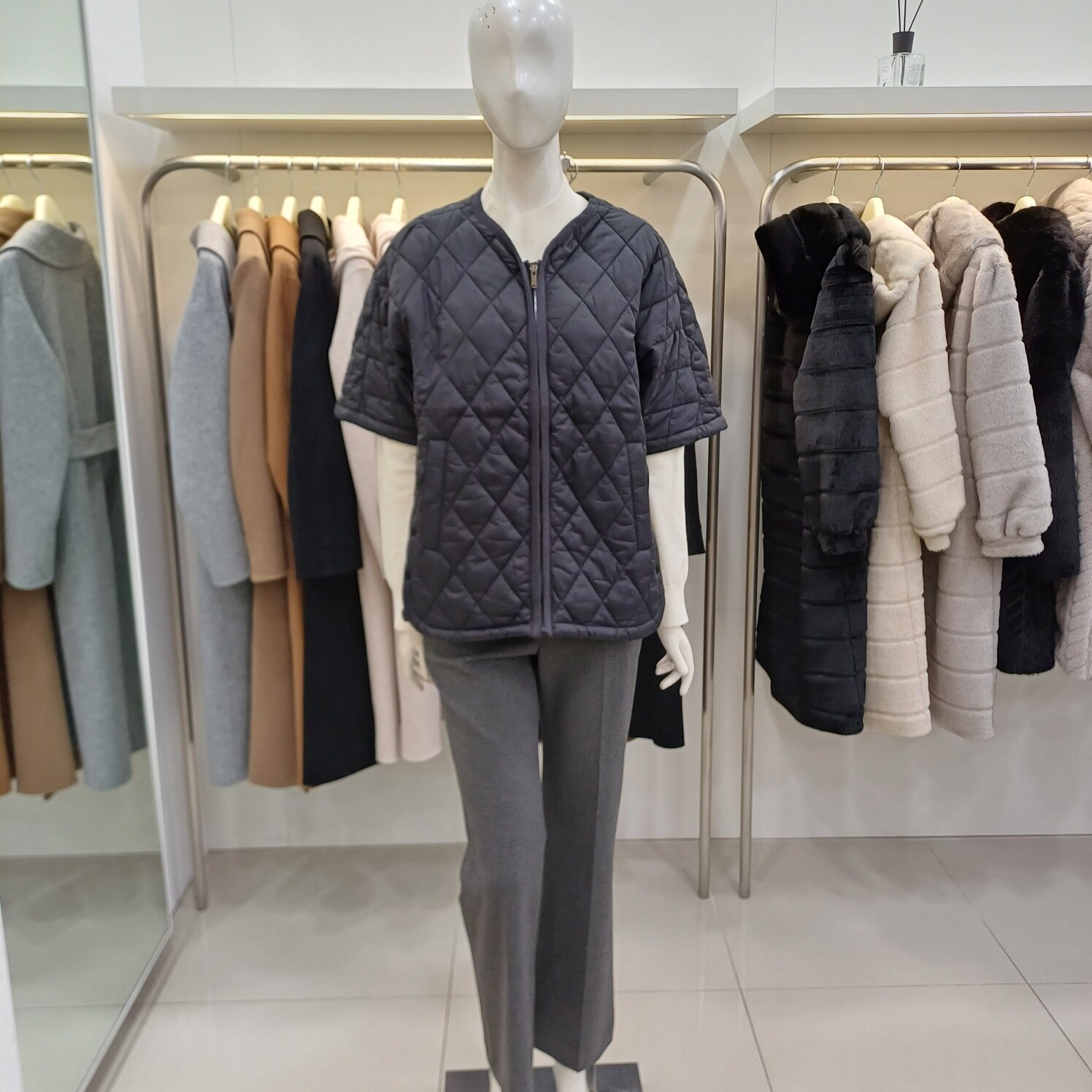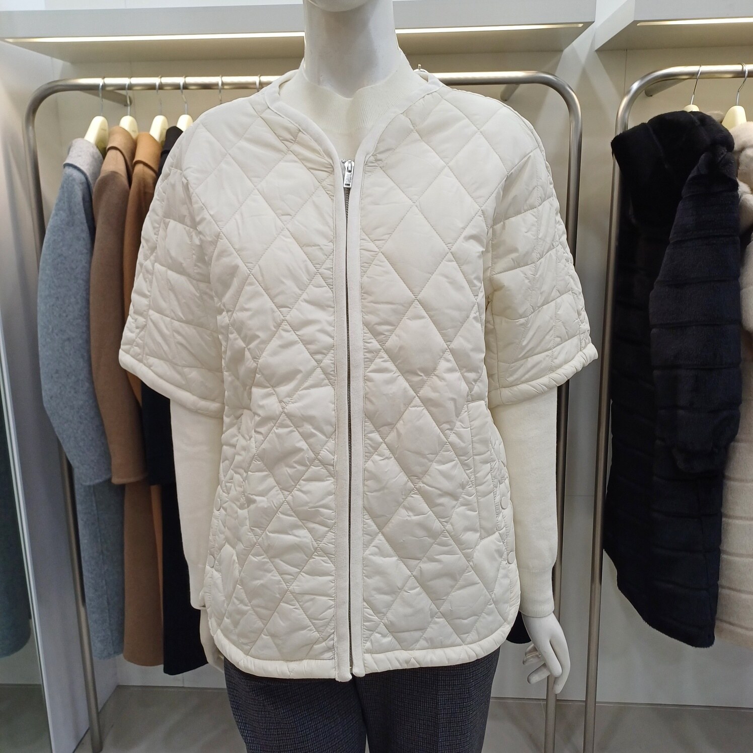 꼼빠니아모다아울렛경량 누빔 반팔 점퍼-CAEW9-WHH010(아이보리블랙D/카키