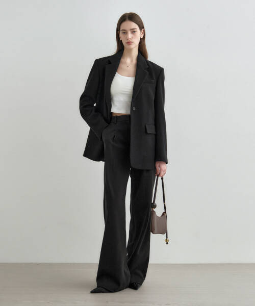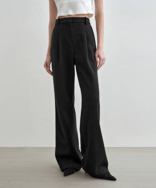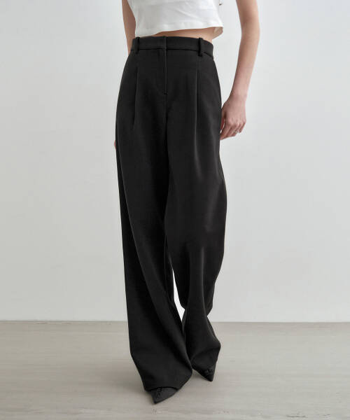 <매장정품> 1월 3일 배송 몽돌 MONGDOL 윈터ver 원 턱 와이드 슬랙스 블랙 MDPT025FWBLACK 138451