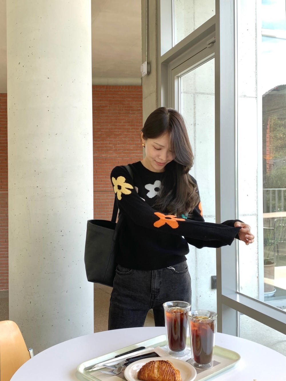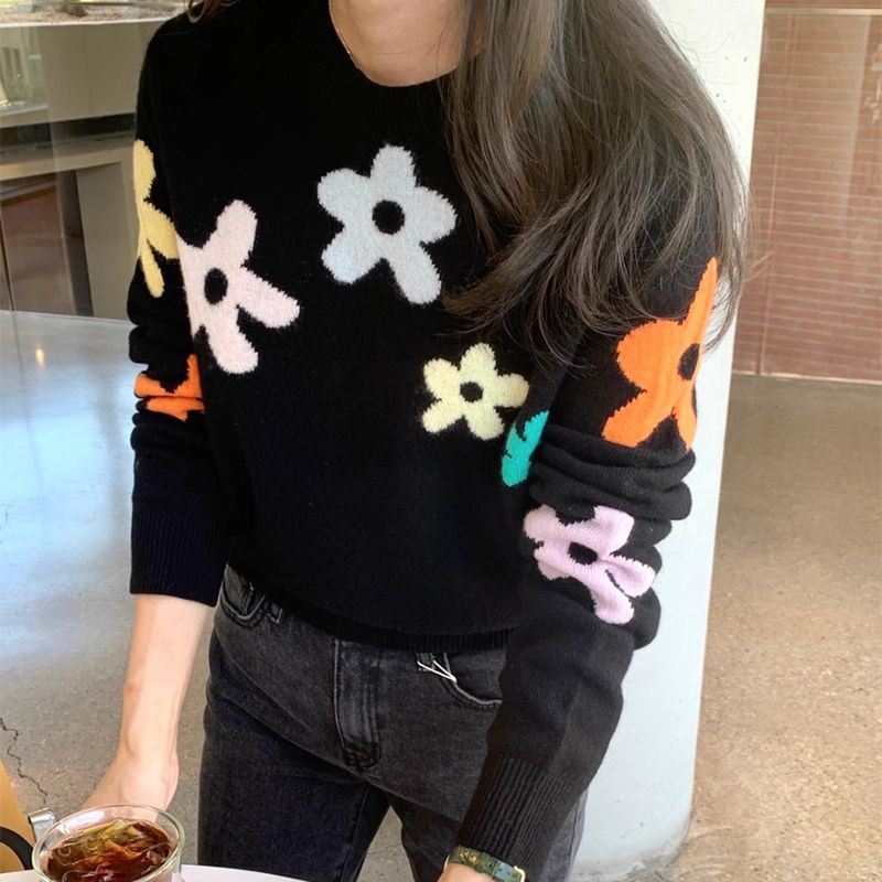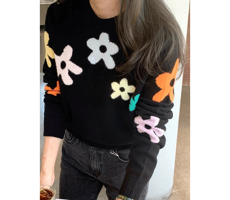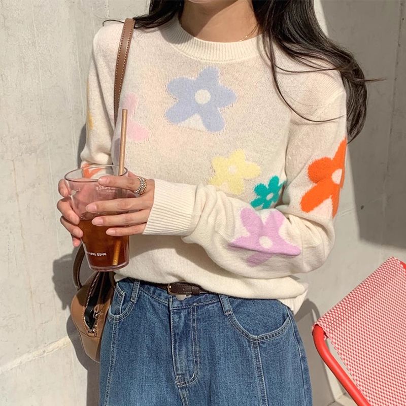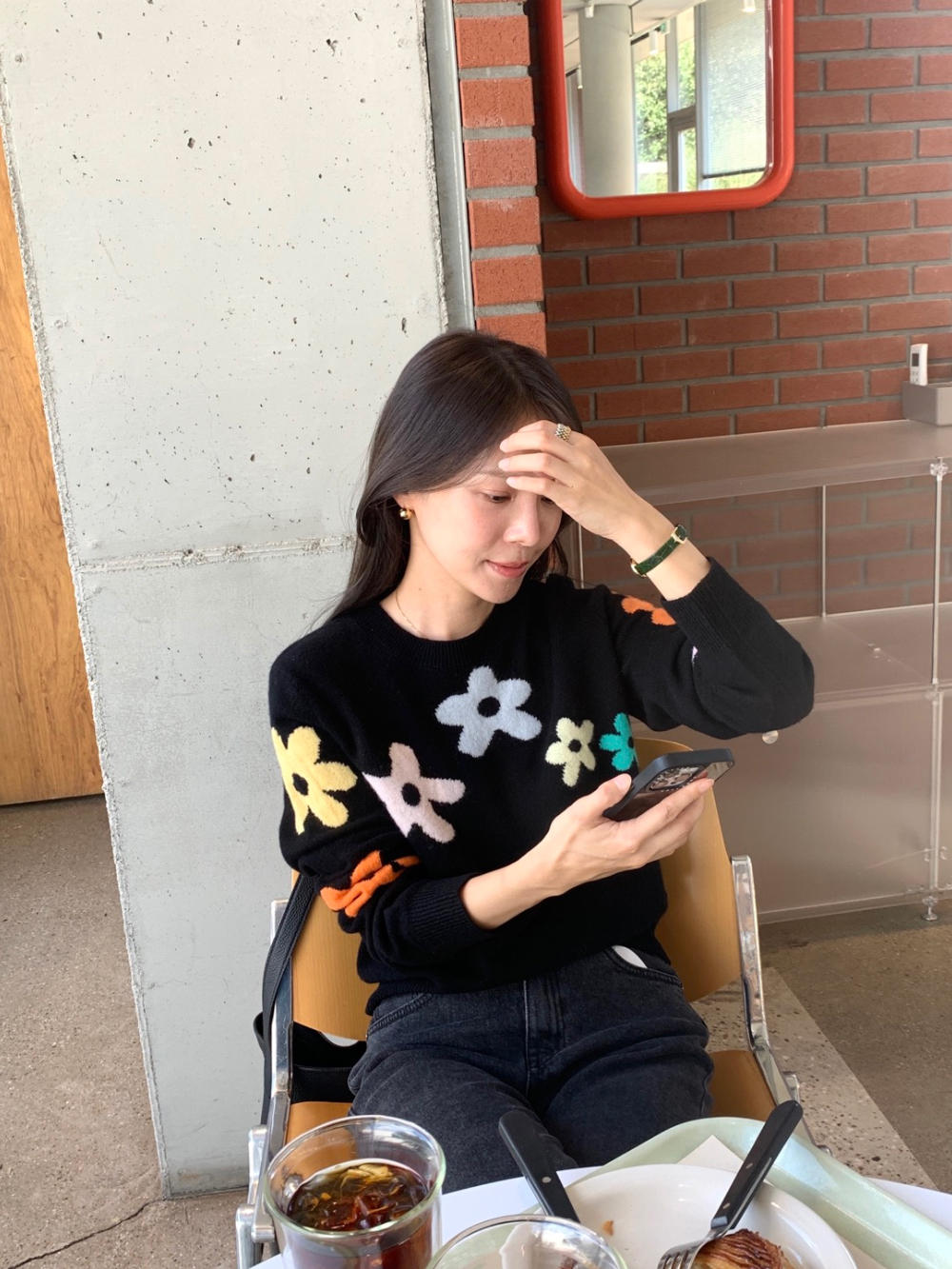 여성 니트티 가을 긴팔 겨울 라운드넥 데일리 꽃무늬 간절기 스웨터