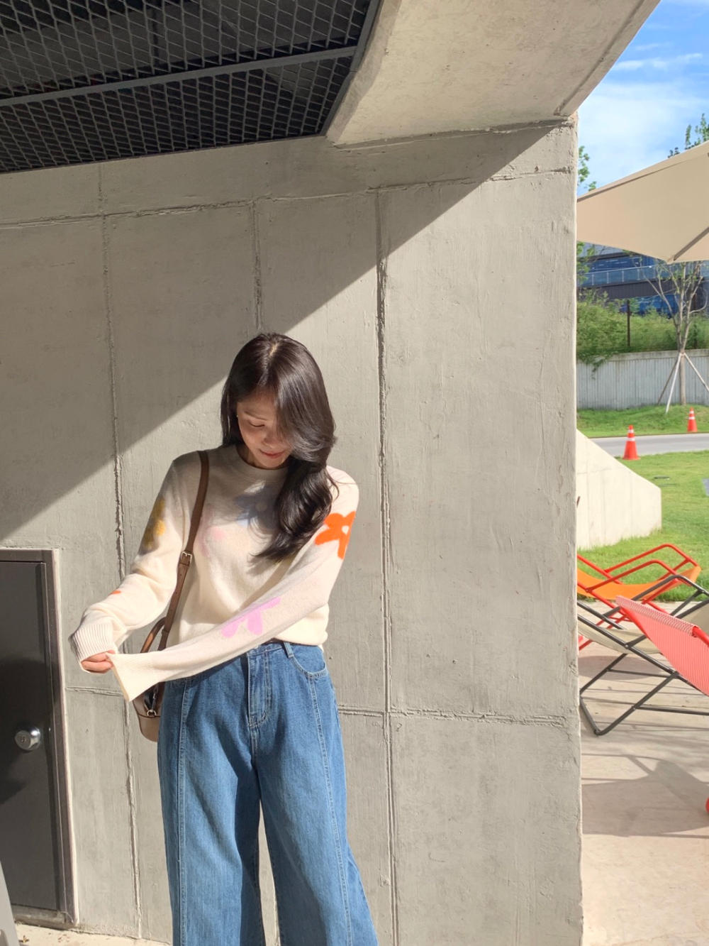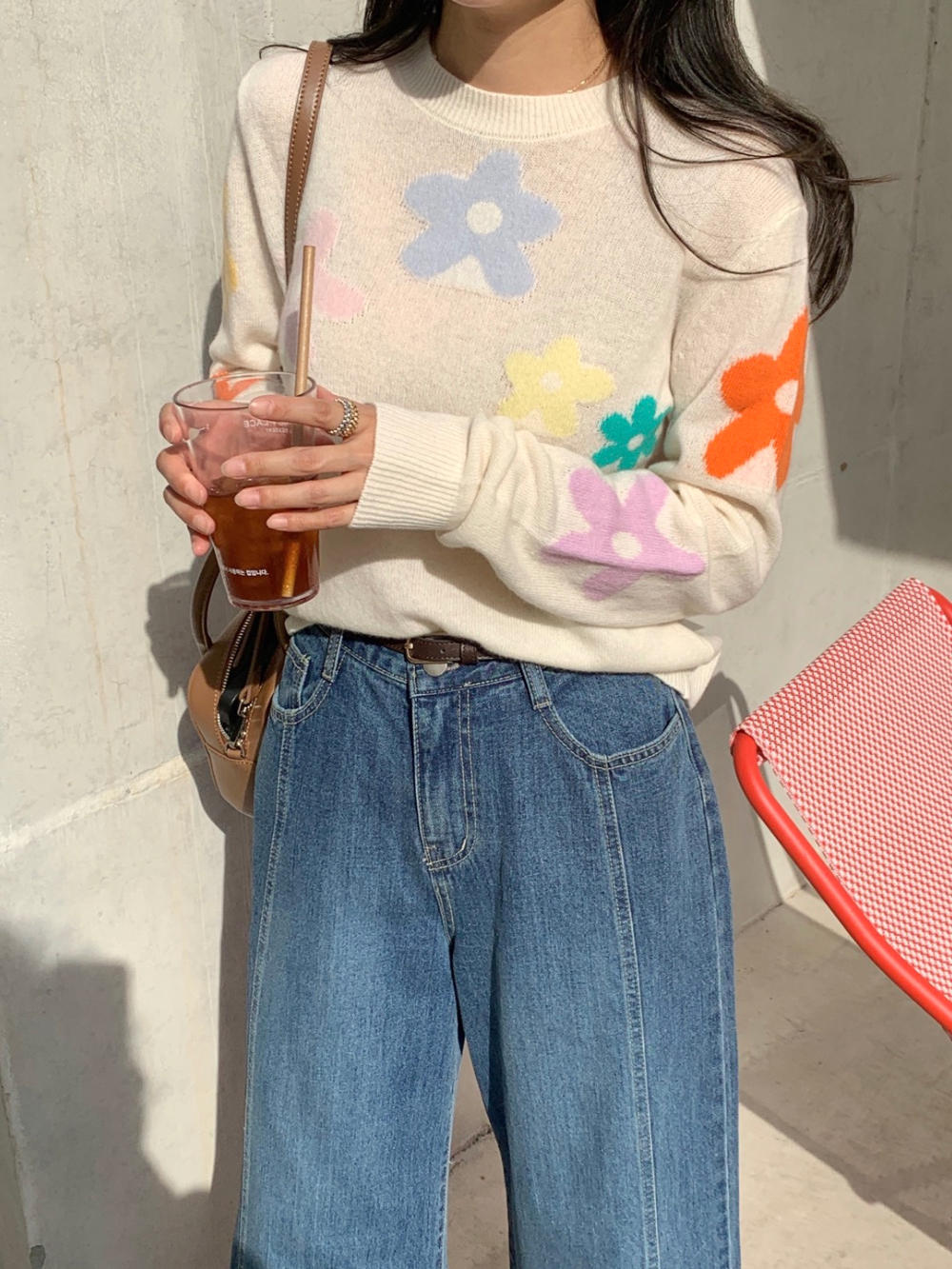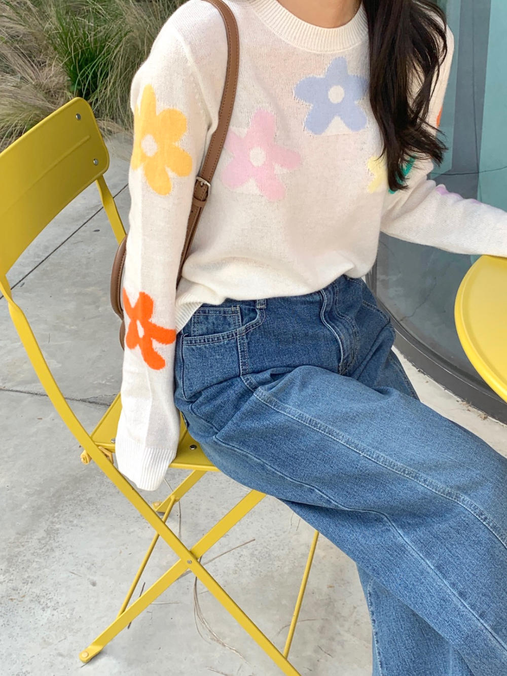 여성 니트티 가을 긴팔 겨울 라운드넥 데일리 꽃무늬 간절기 스웨터