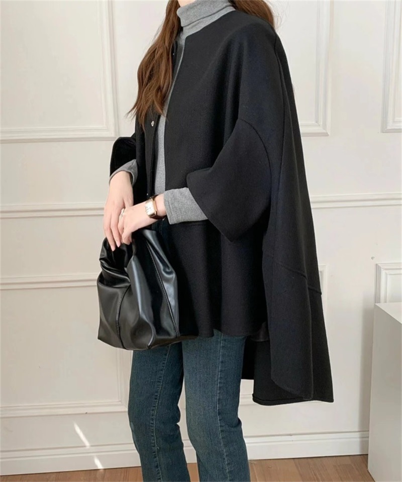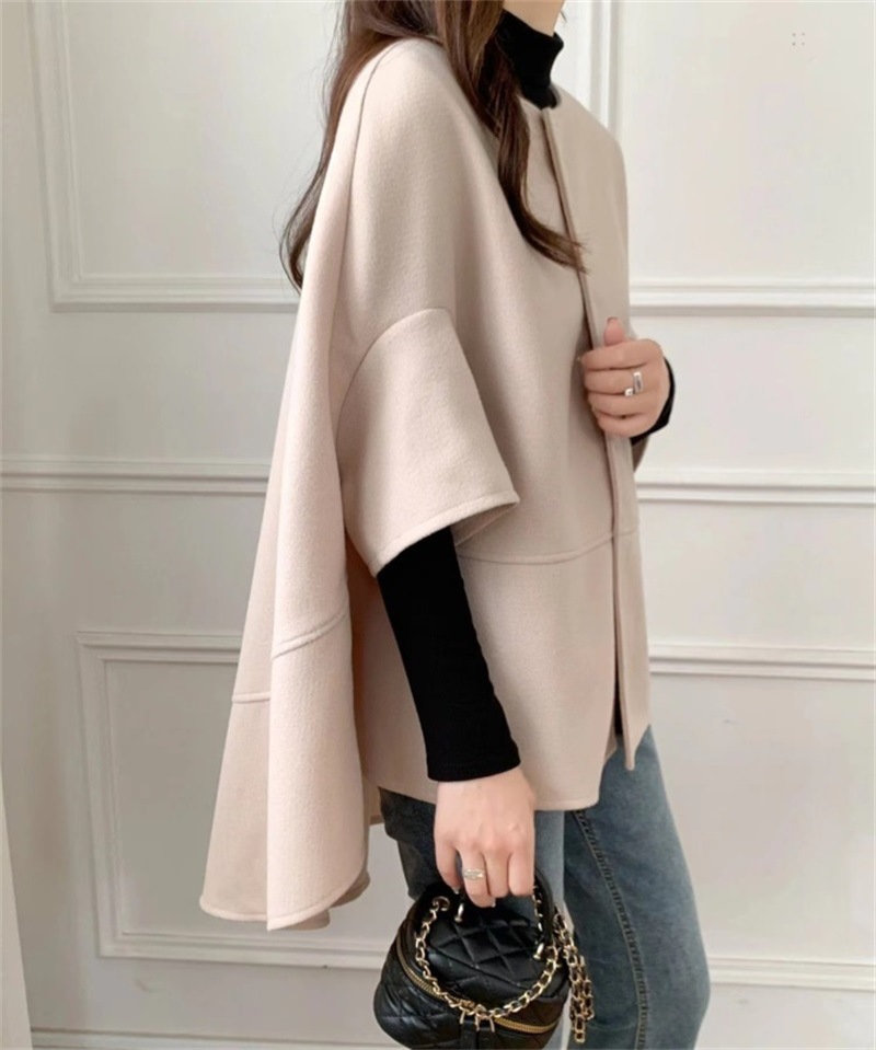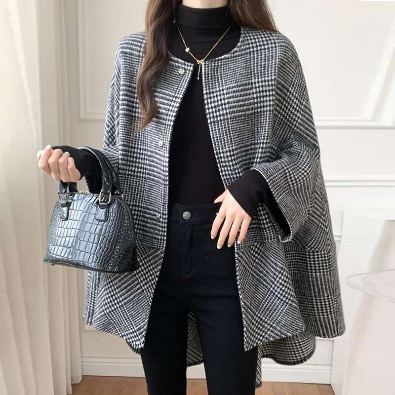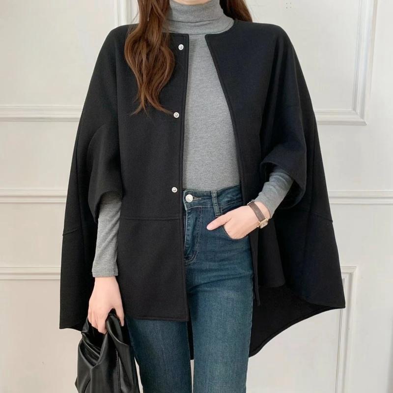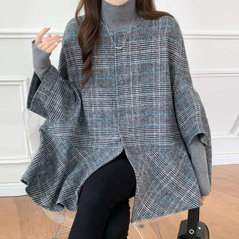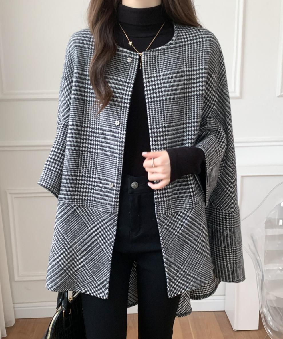 더벨러리 여성 케이프 하프 코트 BKC4706 망토 모직 무지 체크