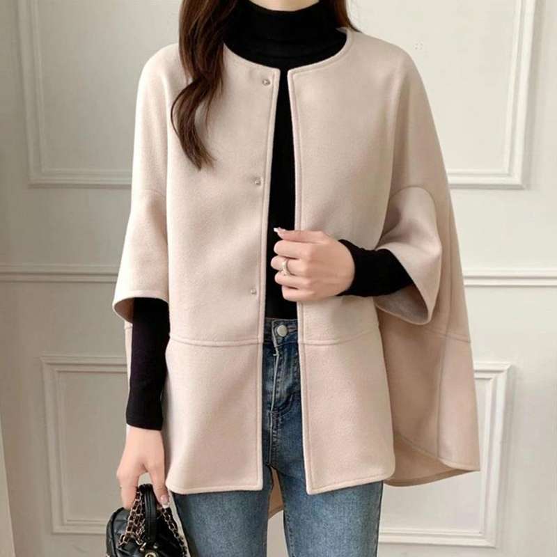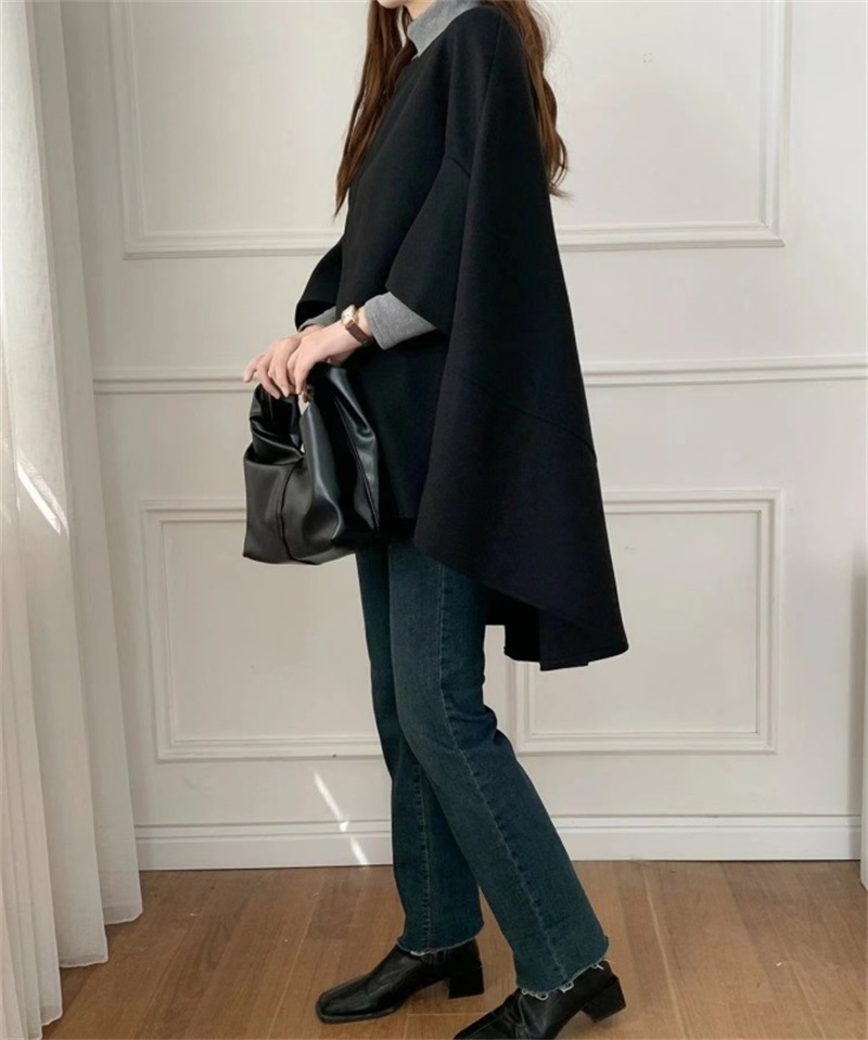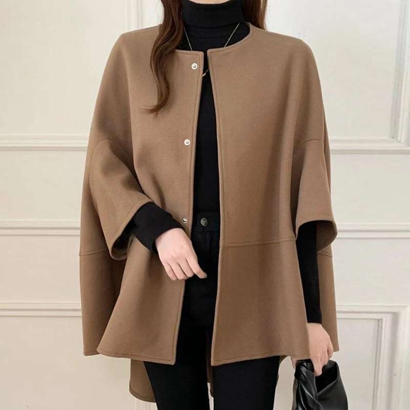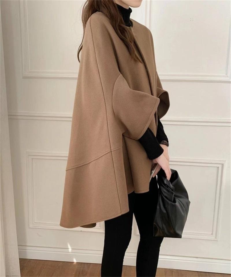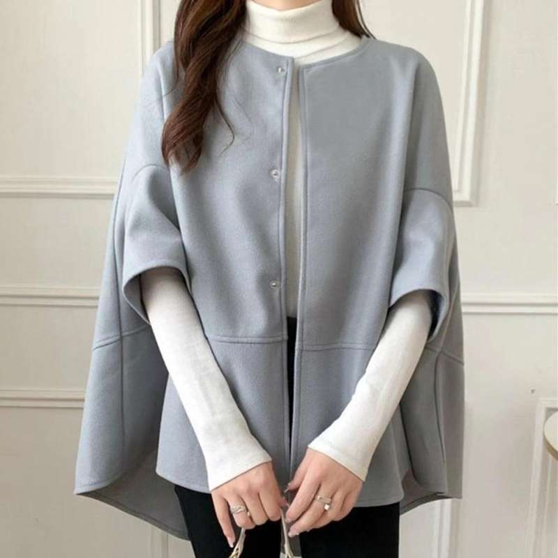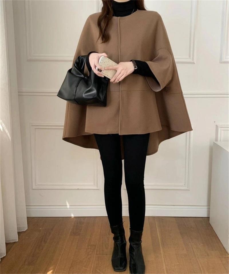 더벨러리 여성 케이프 하프 코트 BKC4706 망토 모직 무지 체크