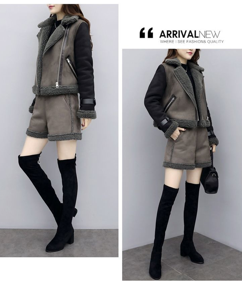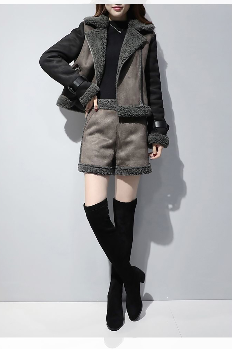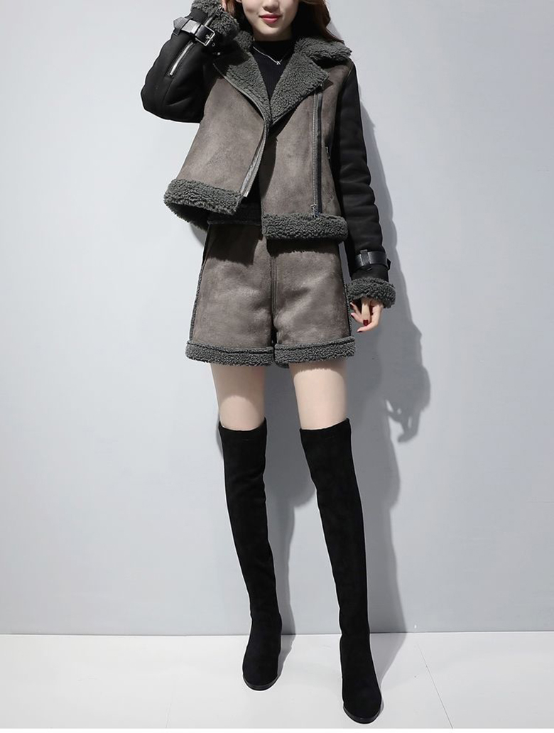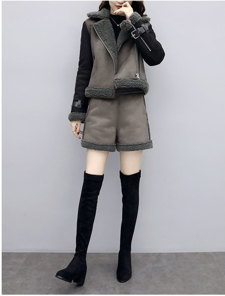 여성 바지 정장 세트/여성 겨울 패치워크 가죽 양털자켓 코트 반바지 빅사이즈 캐주얼세트
