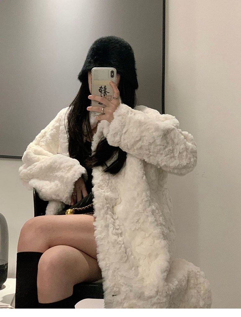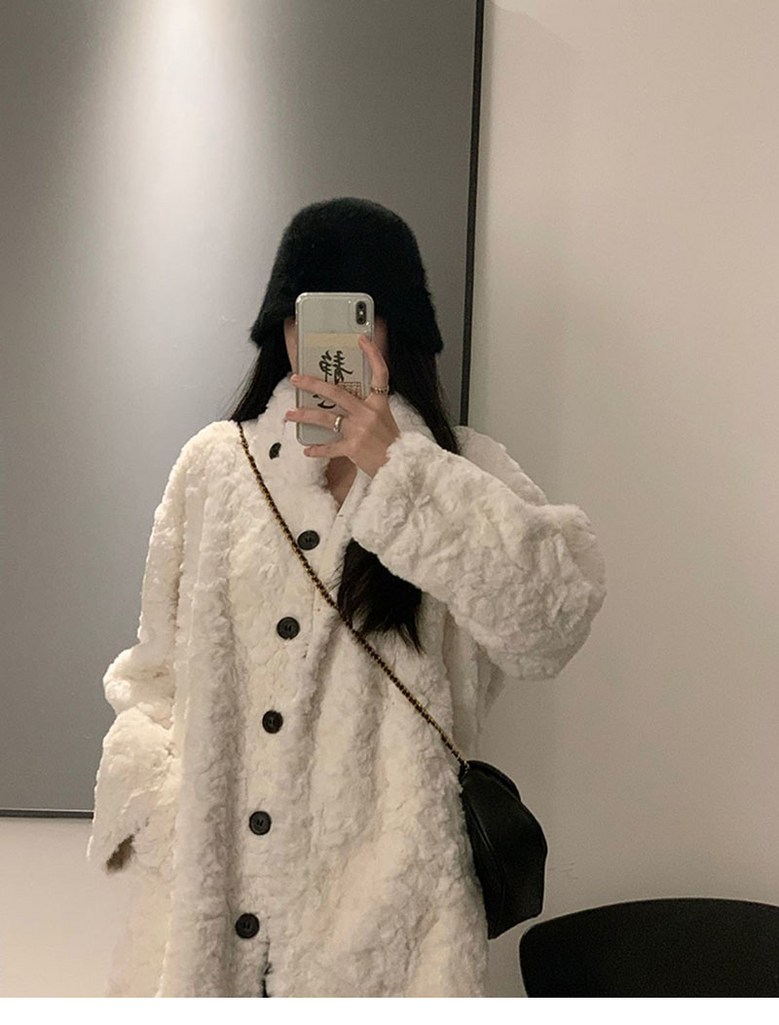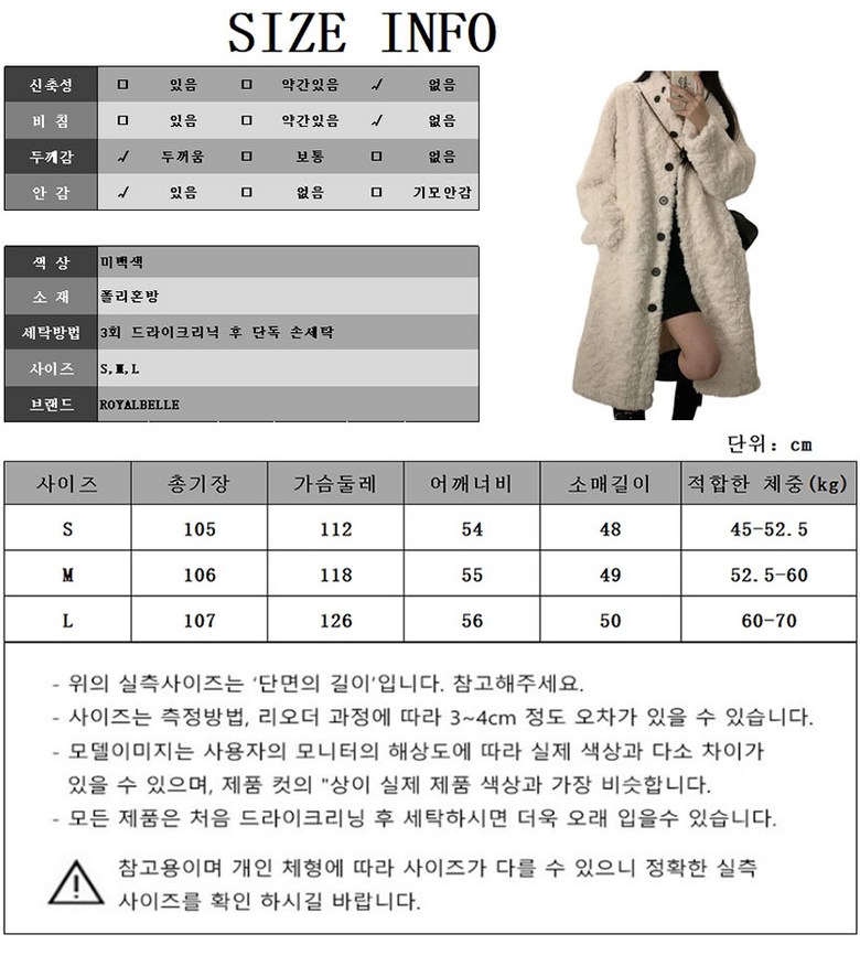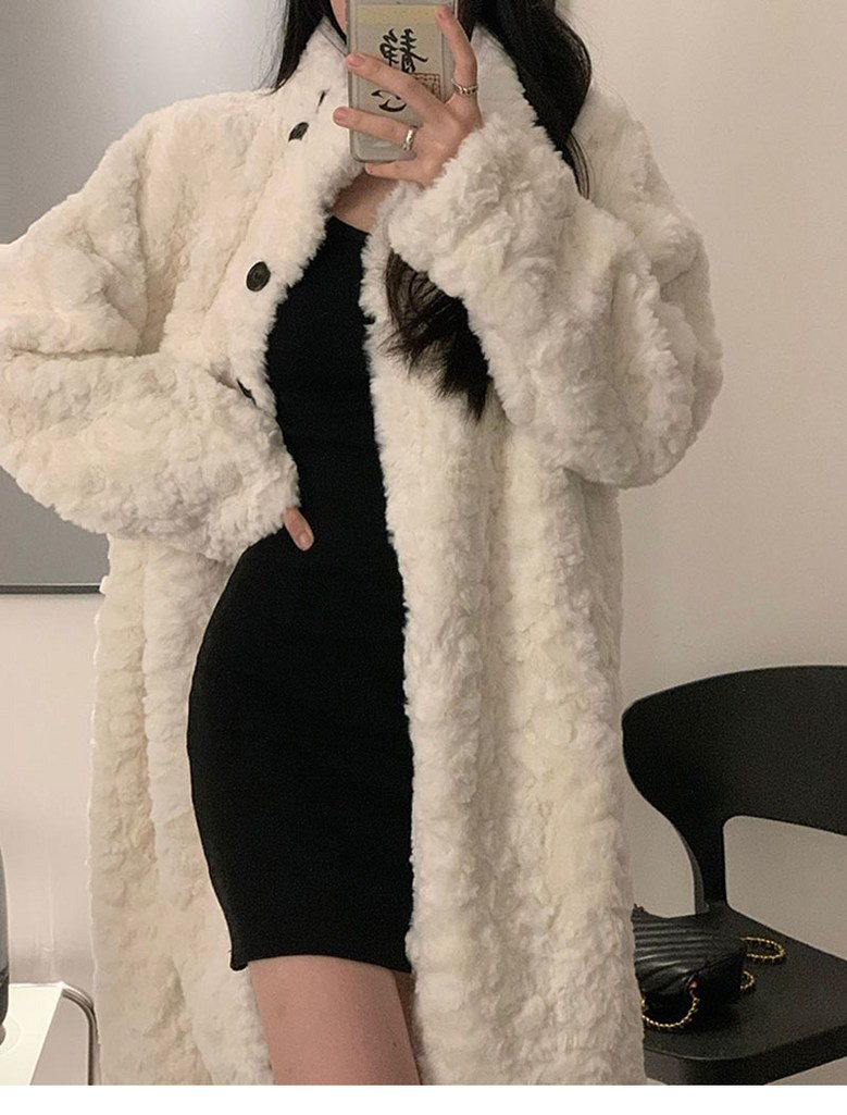 여성 루즈핏 버튼 스탠드 칼라 따뜻한 롱 도톰 램스울 코트