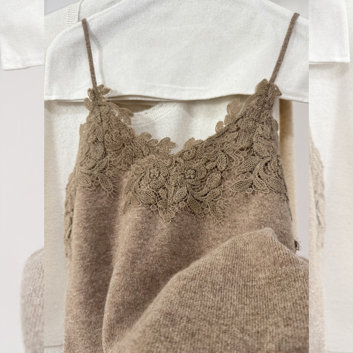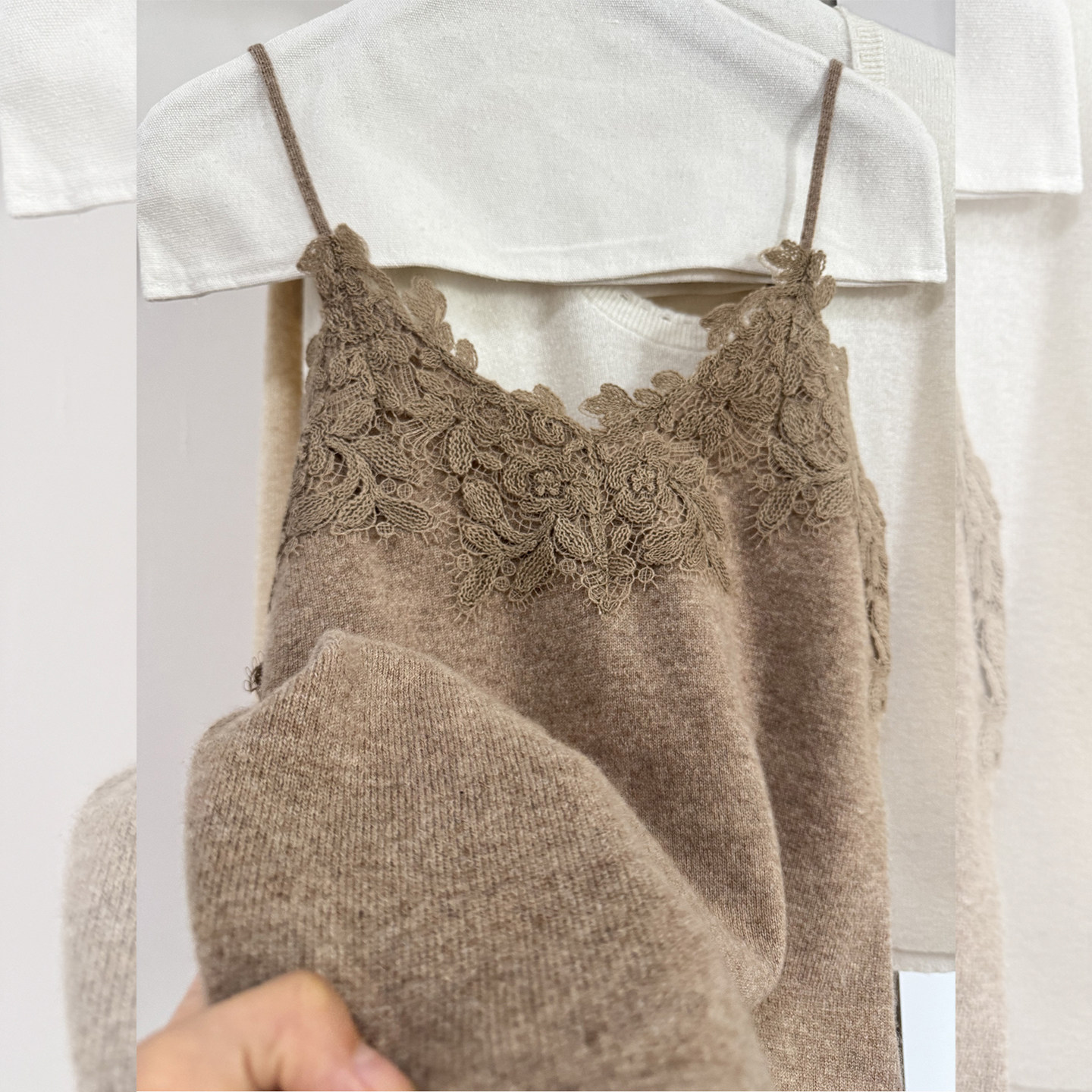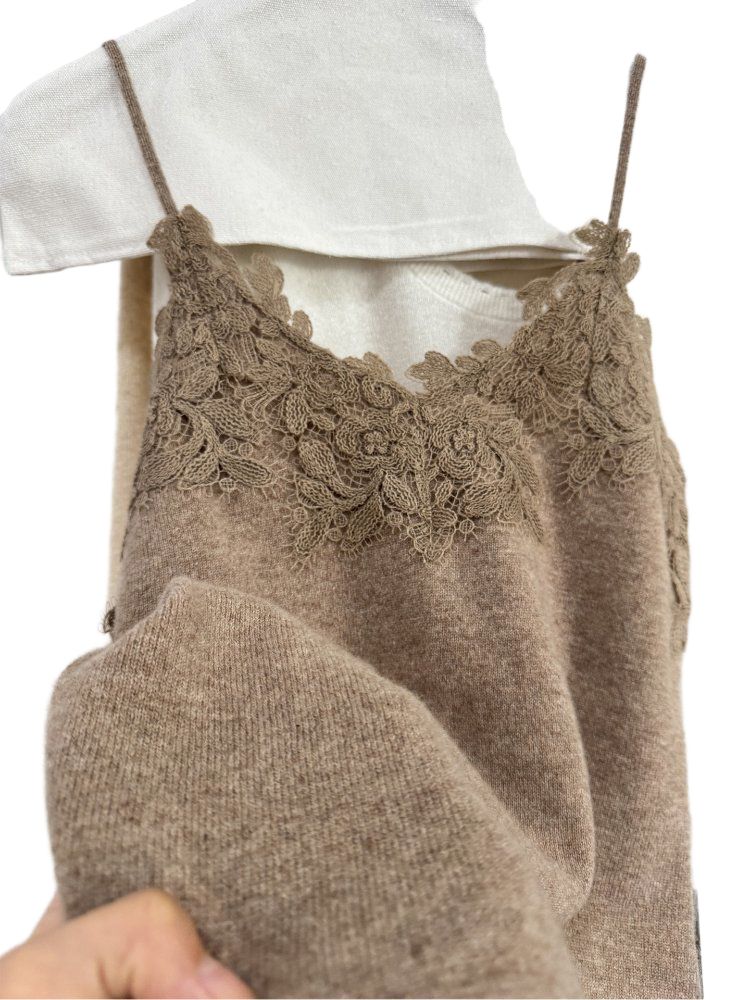 ?? 여성스러운 레이스 디테일 섬세한 레이스와 니트 소재의 조화로 고급스러운 분위기?
