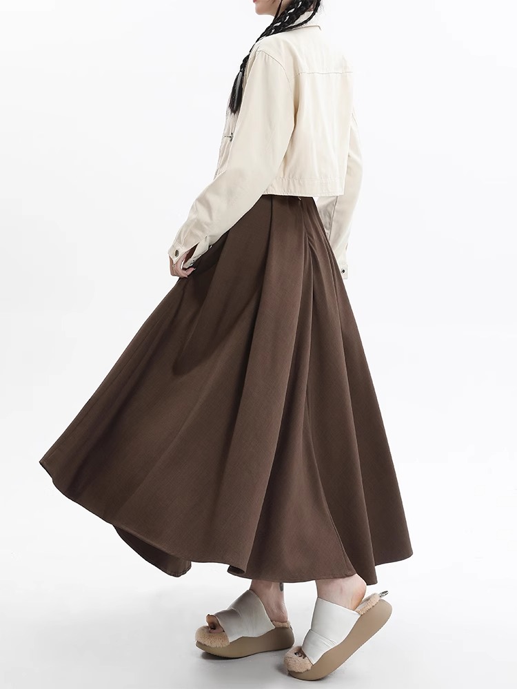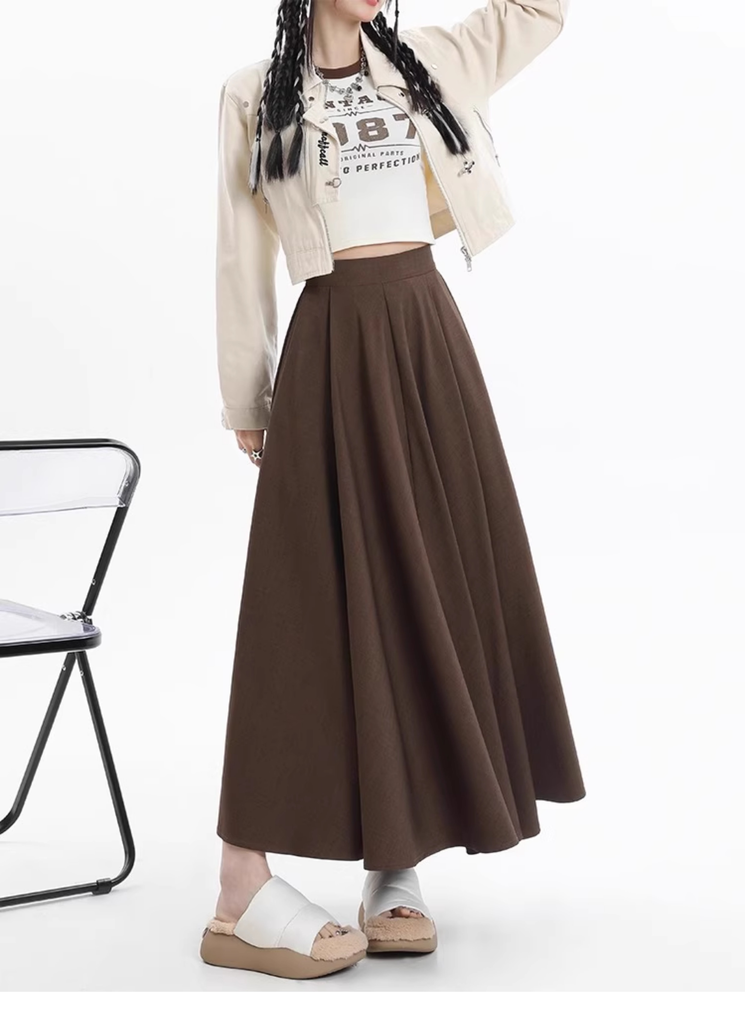 가을 겨울 데일리 빅사이즈 발목 맥시 a라인 블랙 캐주얼 치마 가을롱스커트 주름스커트 트임스커트