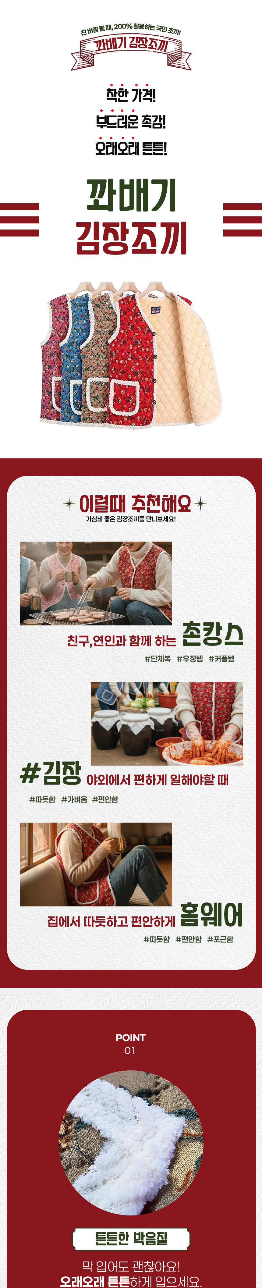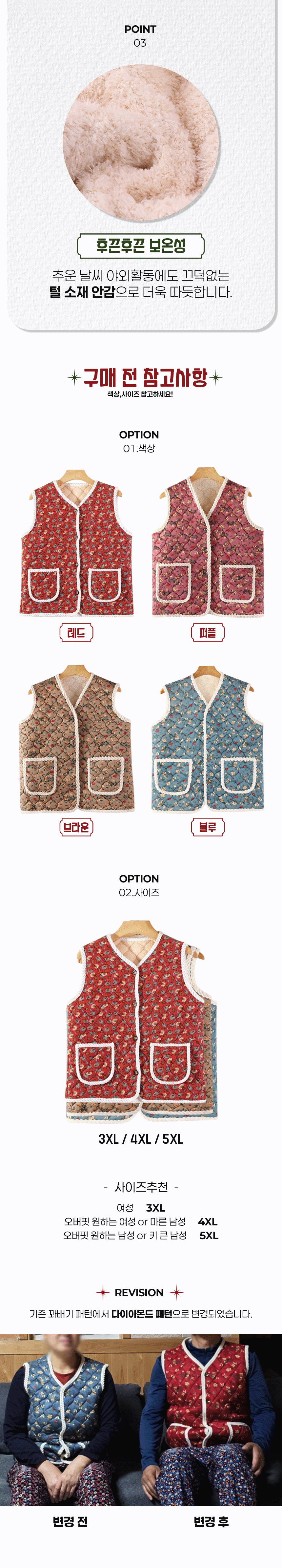 따뜻한 누빔 융털 기모 꽃무늬 깔깔이 김장 조끼 할머니 빈티지 촌캉스 보온 겨울 누빔 경량 캠핑 조끼
