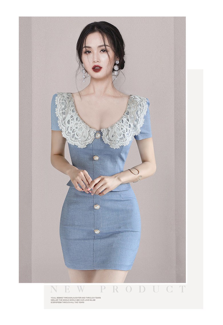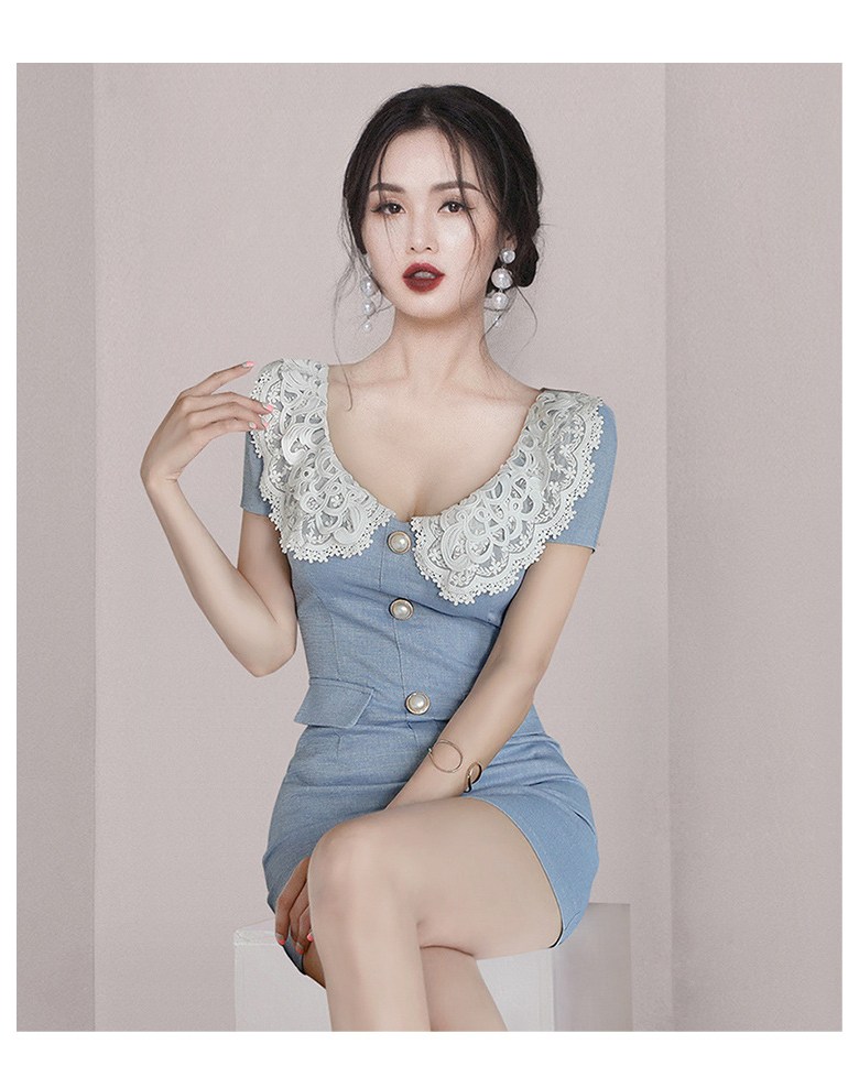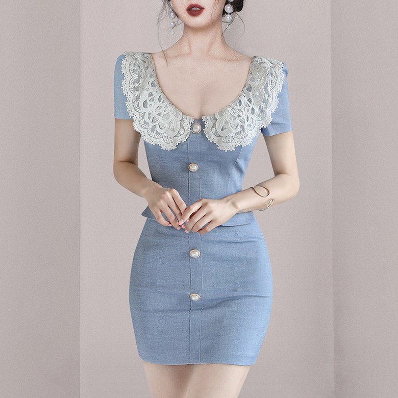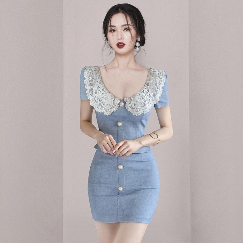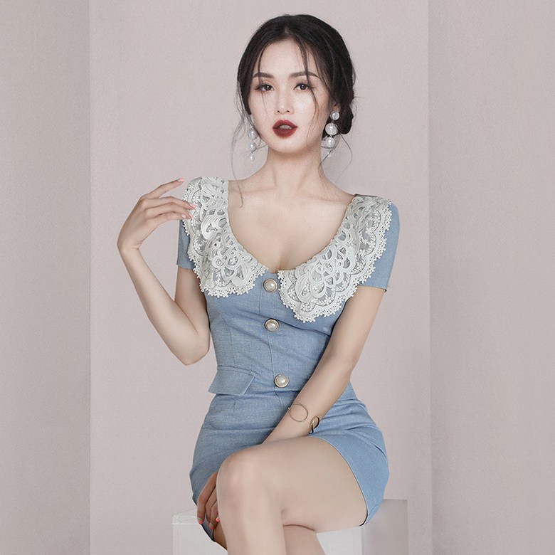 JQS 섹시 홀복 오피스룩 하객 빅사이즈 XL 청 원피스 685