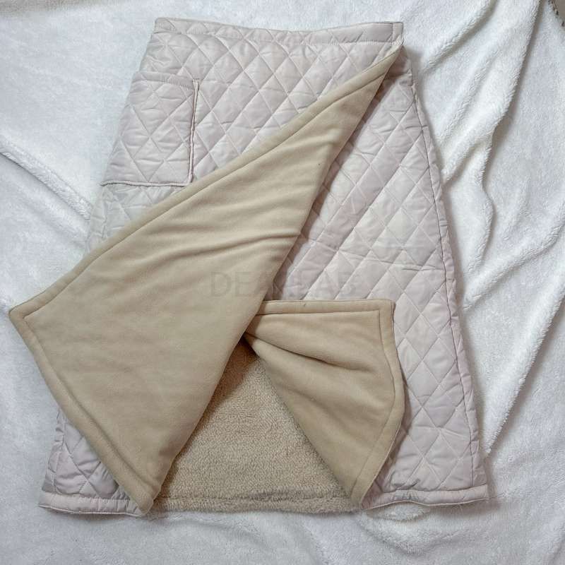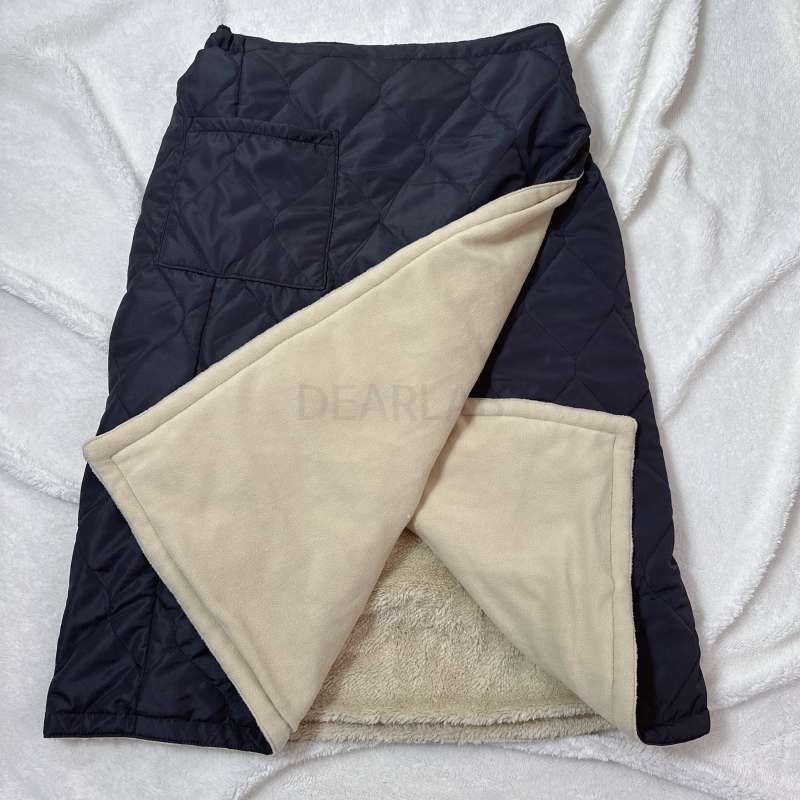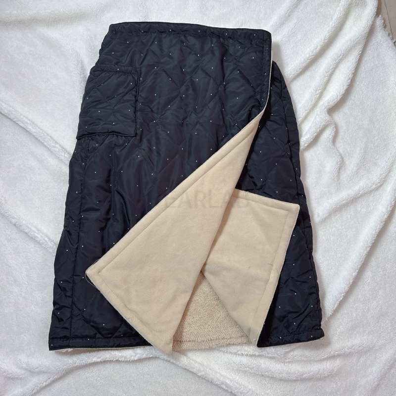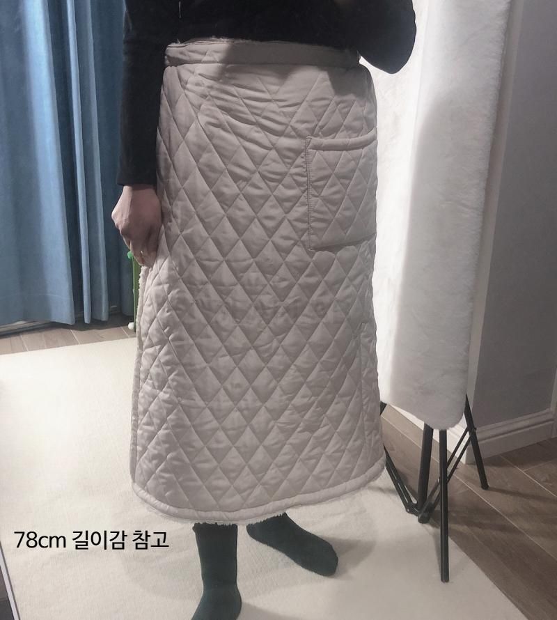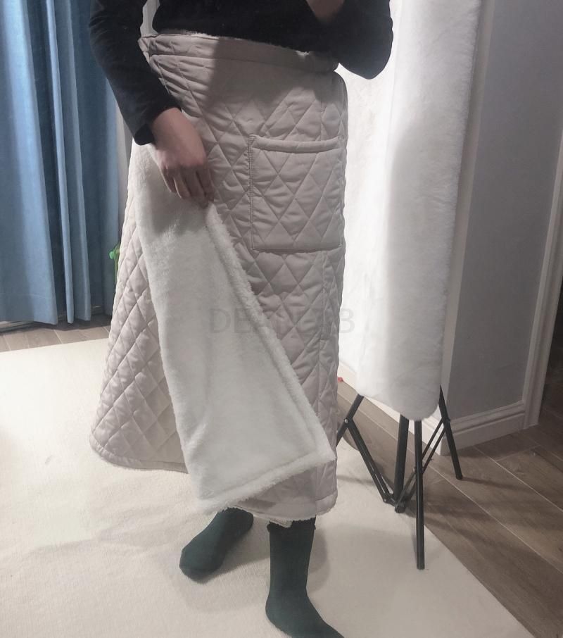 PAAGGO따뜻한 퀼팅 누빔 패딩 랩 스커트 양털 후리스 무릎보호 롱 캐주얼룩