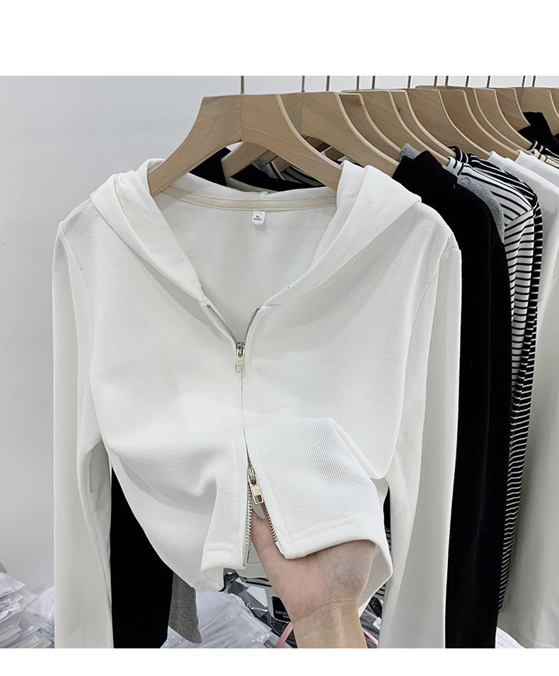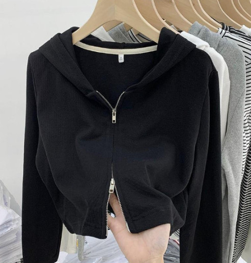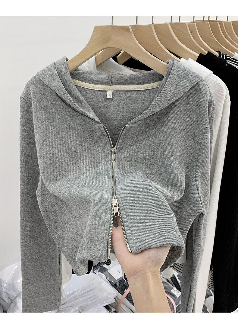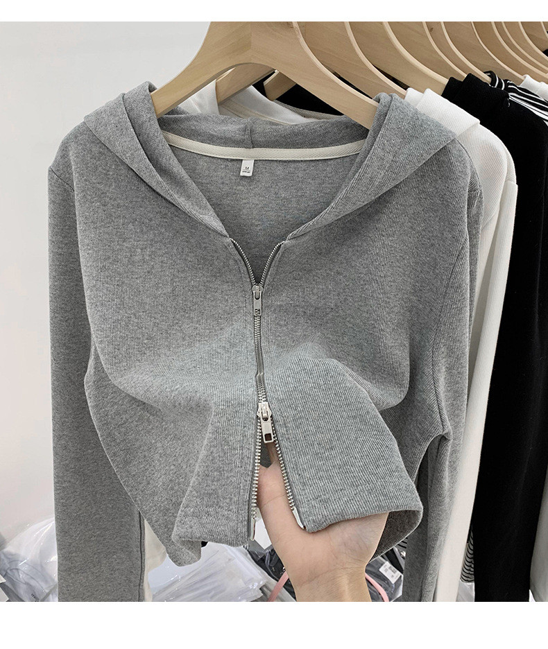 숏 크롭 집업 니트 후드 지퍼 가디건