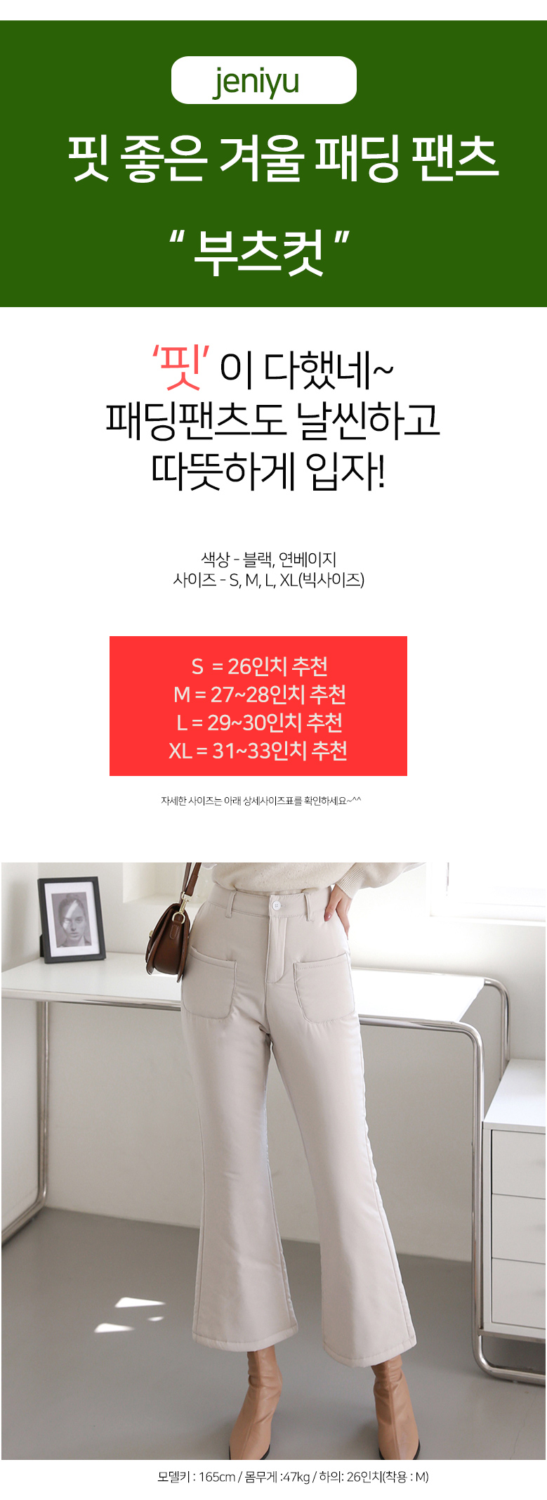 제니유 늘씬해 여성 패딩 방한 부츠컷 겨울 바지