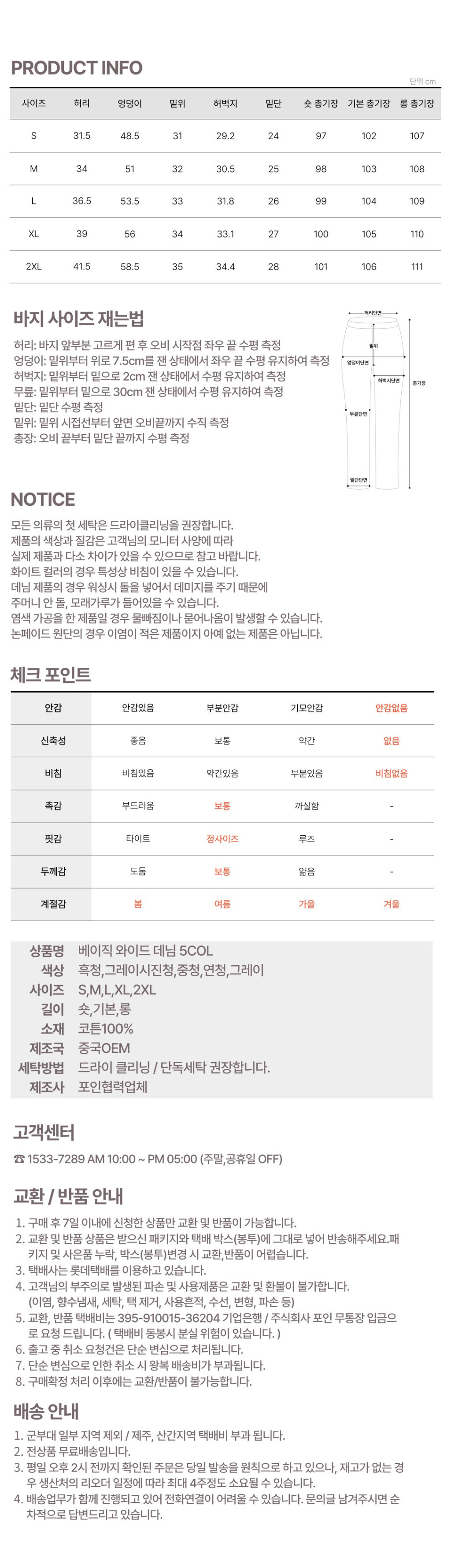 2XL- 허리41.5 엉덩이58.5 밑위35 허벅지34.4 밑단28 숏총장101 기본총장106 롱총장111