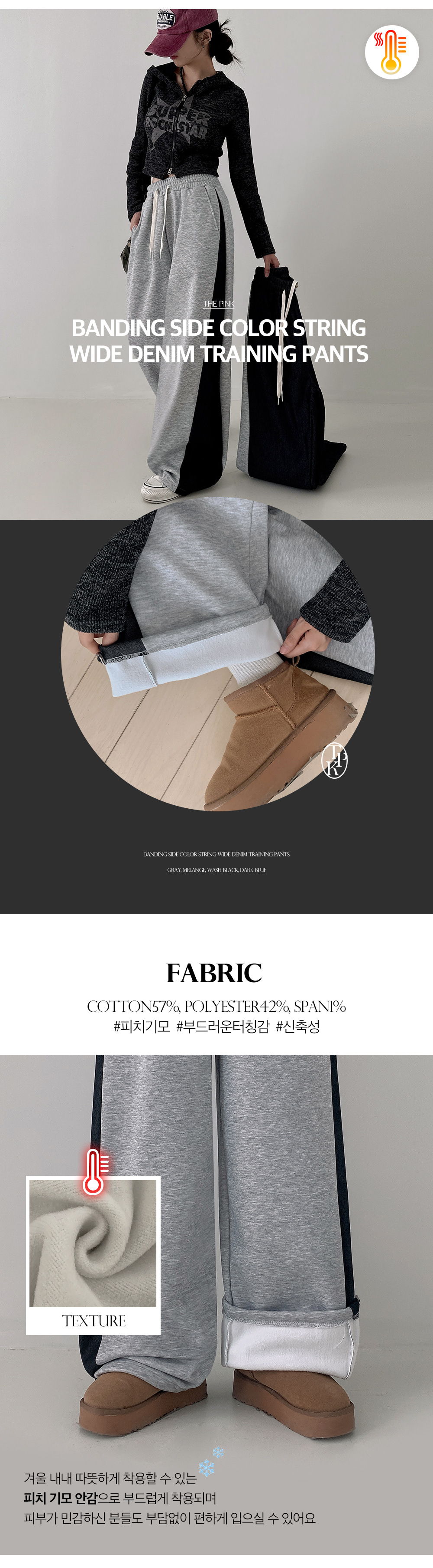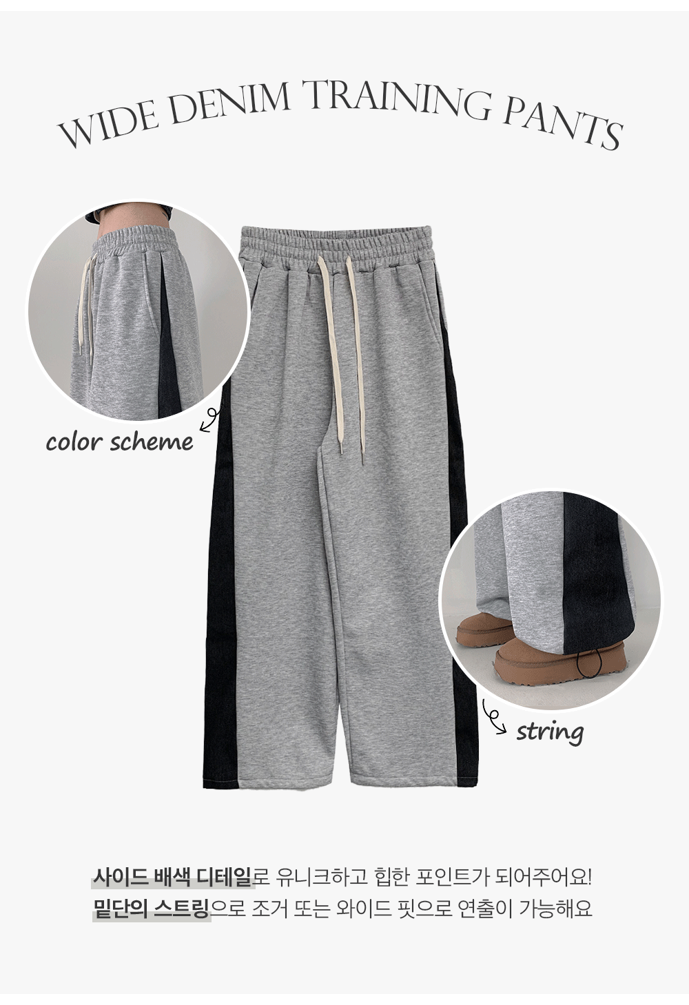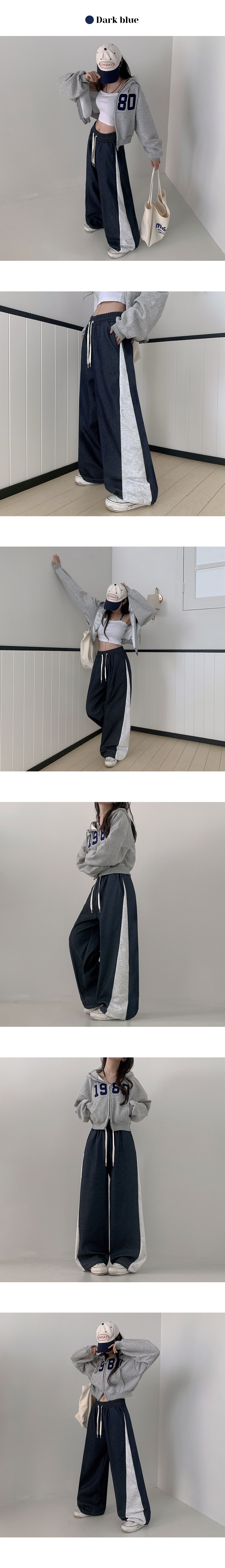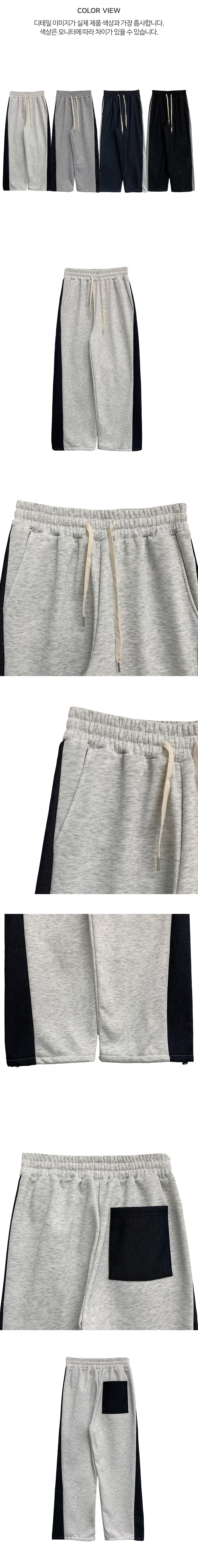 루팀 옆 사이드 핀턱 배색 와이드 기모 트레이닝 팬츠