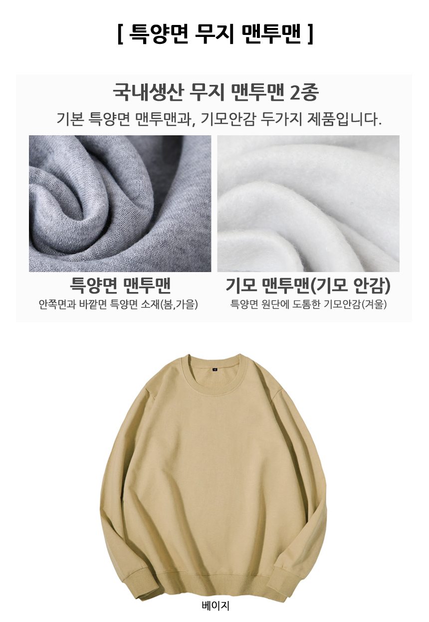 특양면 무지 맨투맨티/기모맨투맨/후드티/오버핏/빅사이즈/단체티