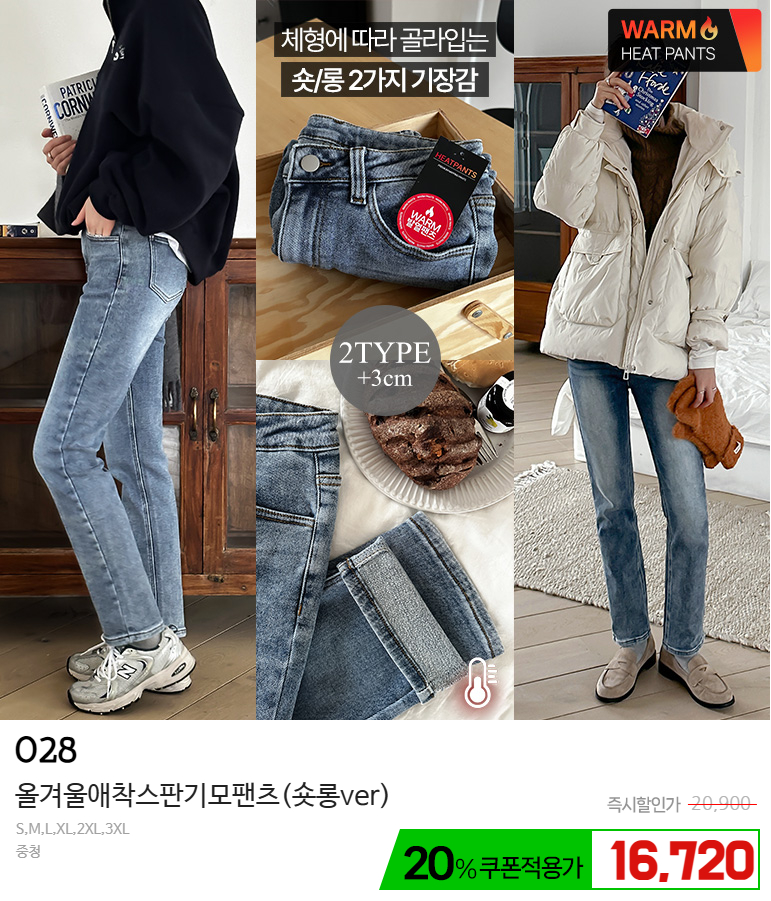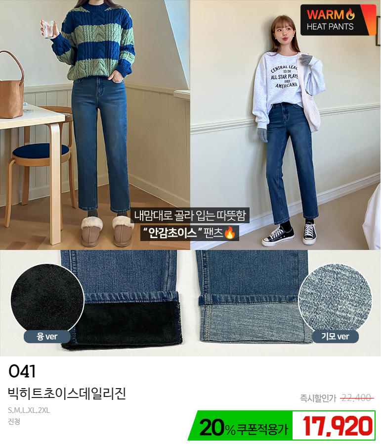 다온샵 겨울신상/베스트/빅사이즈~3XL/기모/청바지/스판/부츠컷
