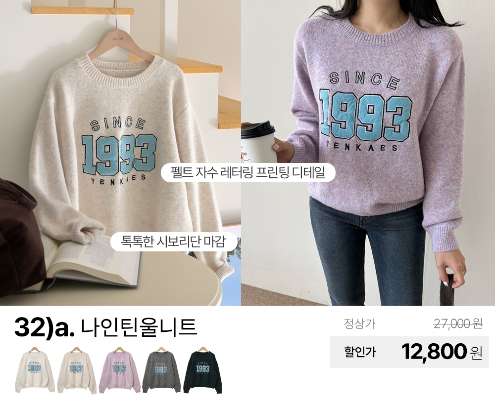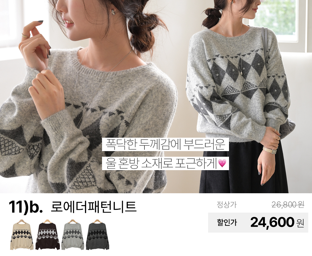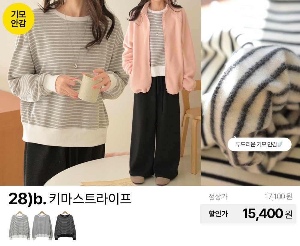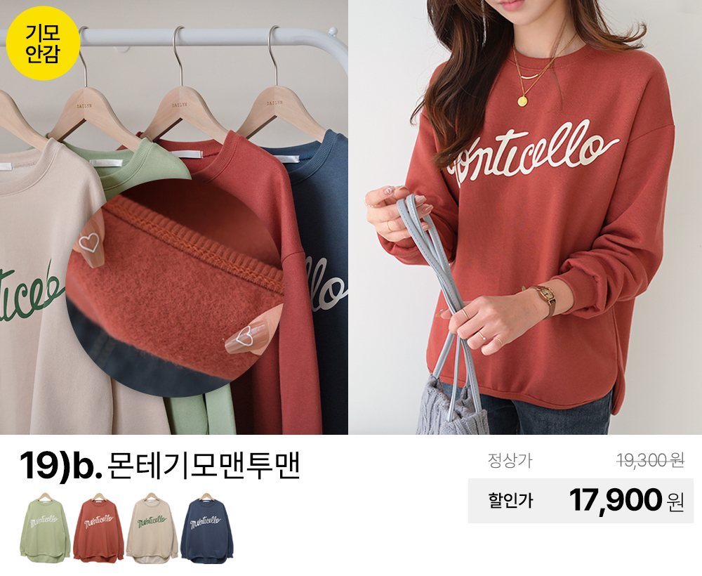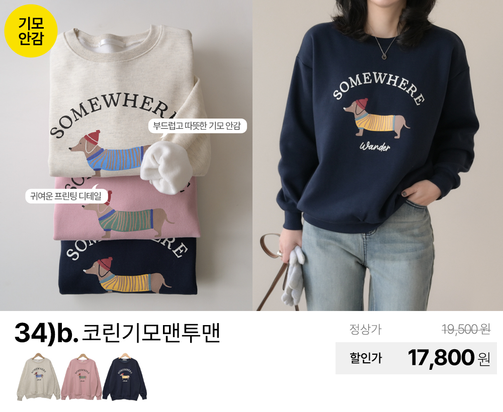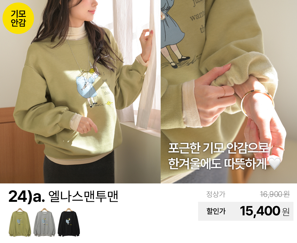 (패션픽) 데일리앤 겨울 티셔츠/니트/기모/패딩/맨투맨/팬츠/스커트/원피스/가디건/조끼/빅사이즈/미시