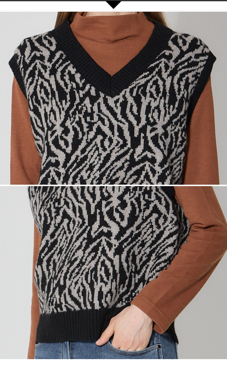 세련된 패턴이 포인트인 브이넥 니트입니다.