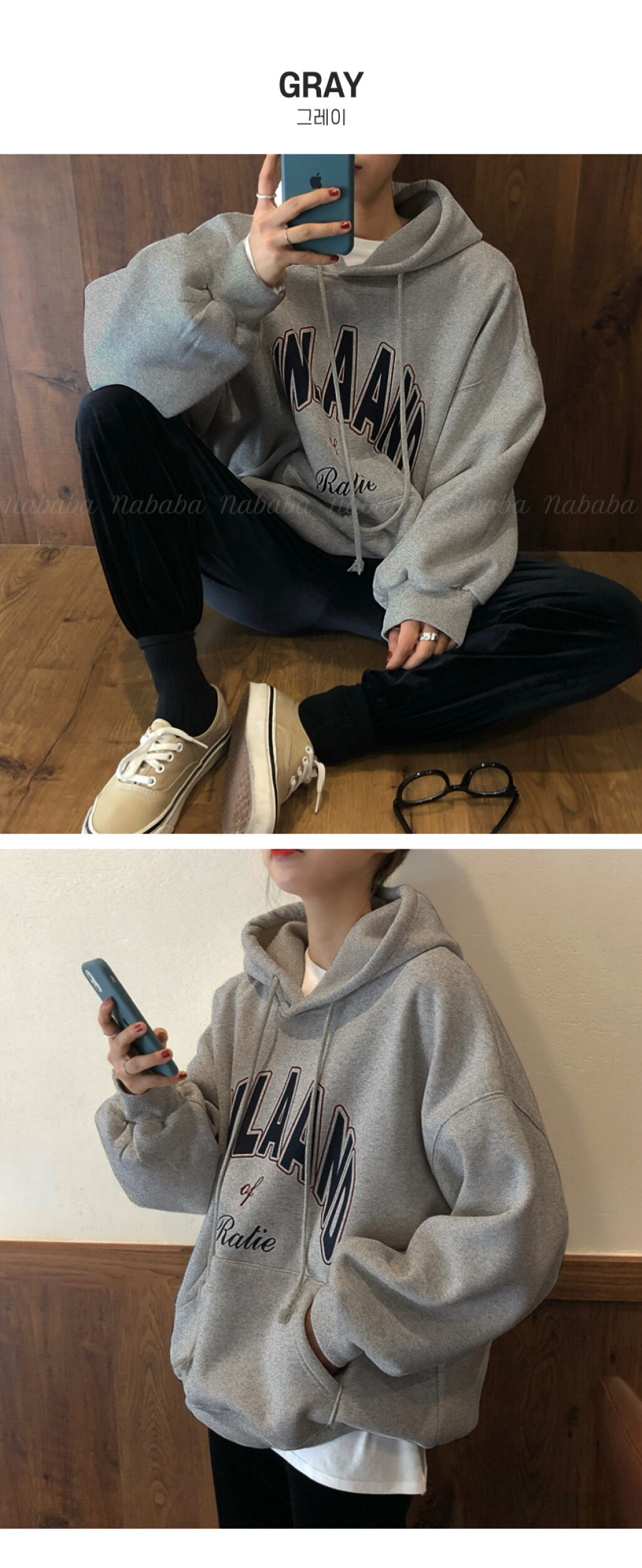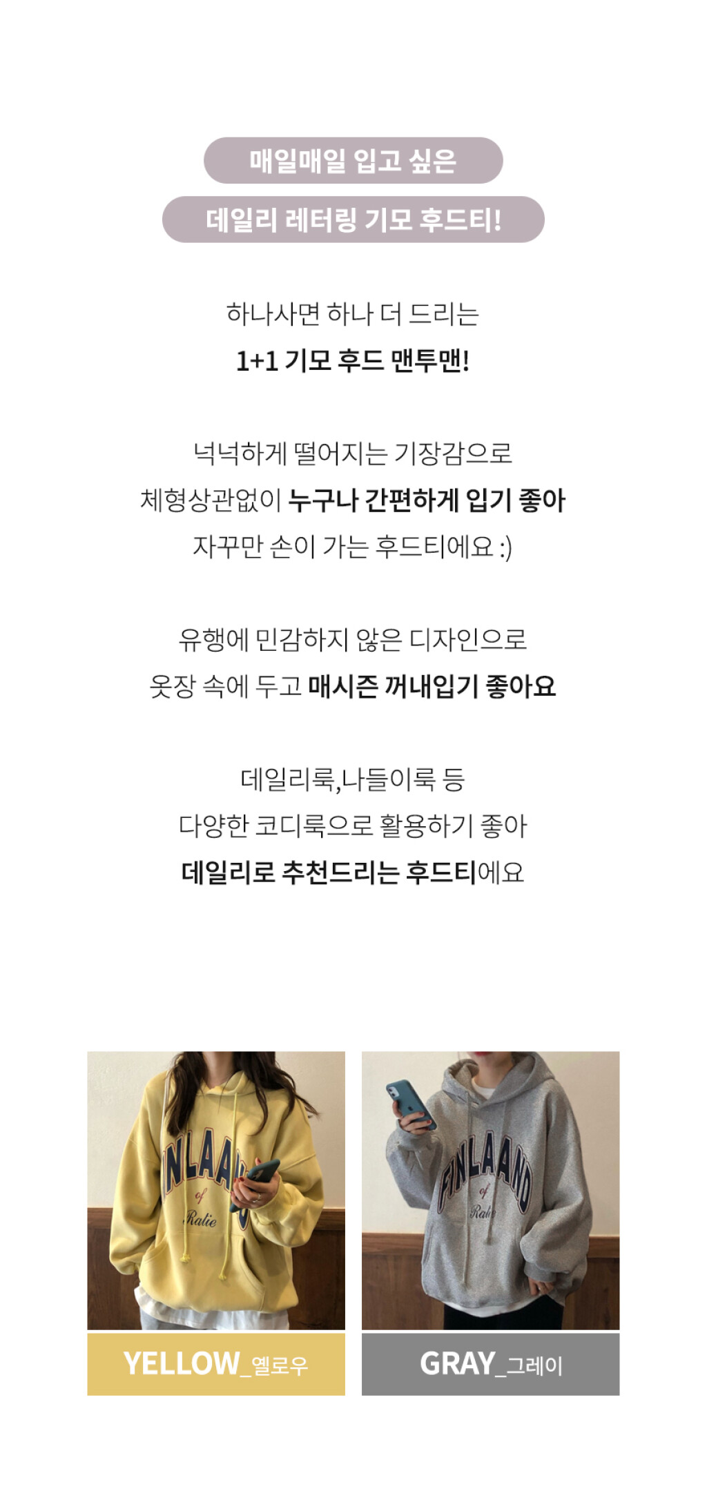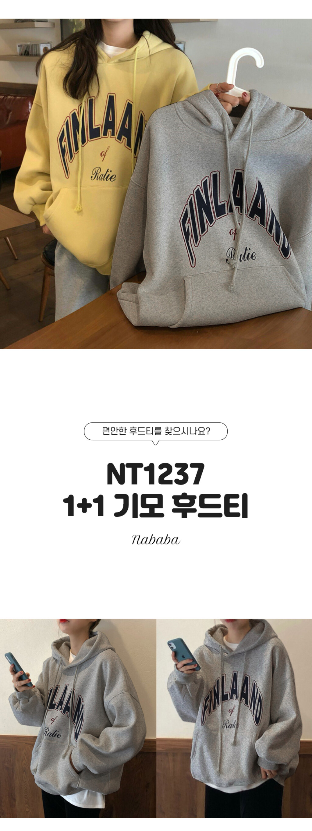 NT1237 여성 1+1 레터링 기모 긴팔 후드티